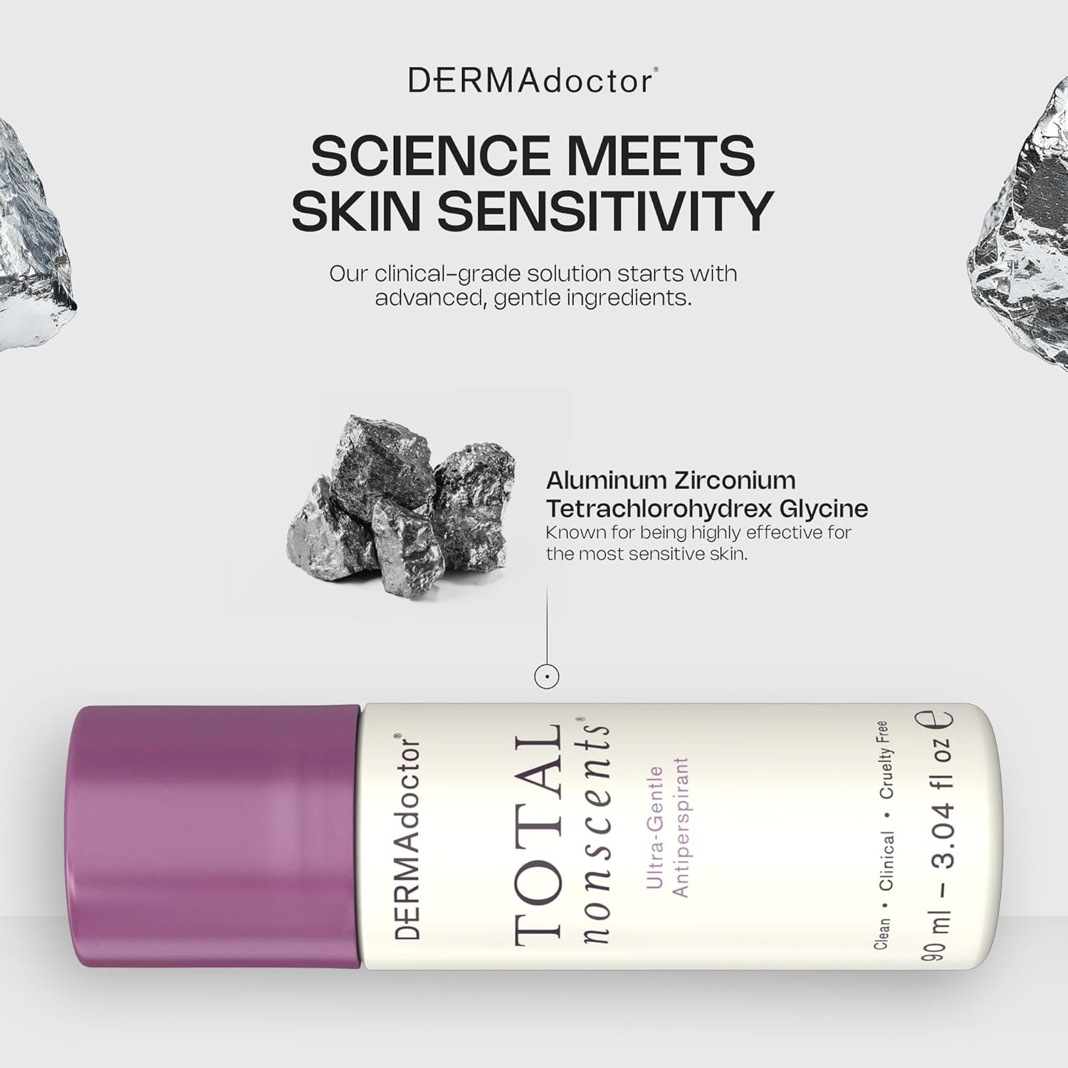 DERMAdoctor Total NonScents Ultra-Gentle Antiperspirant for Sensitive Skin. Unscented, Clinical Strength Antiperspirant for Men & Women; Hypoallergenic Roll On Deodorant - 3 oz