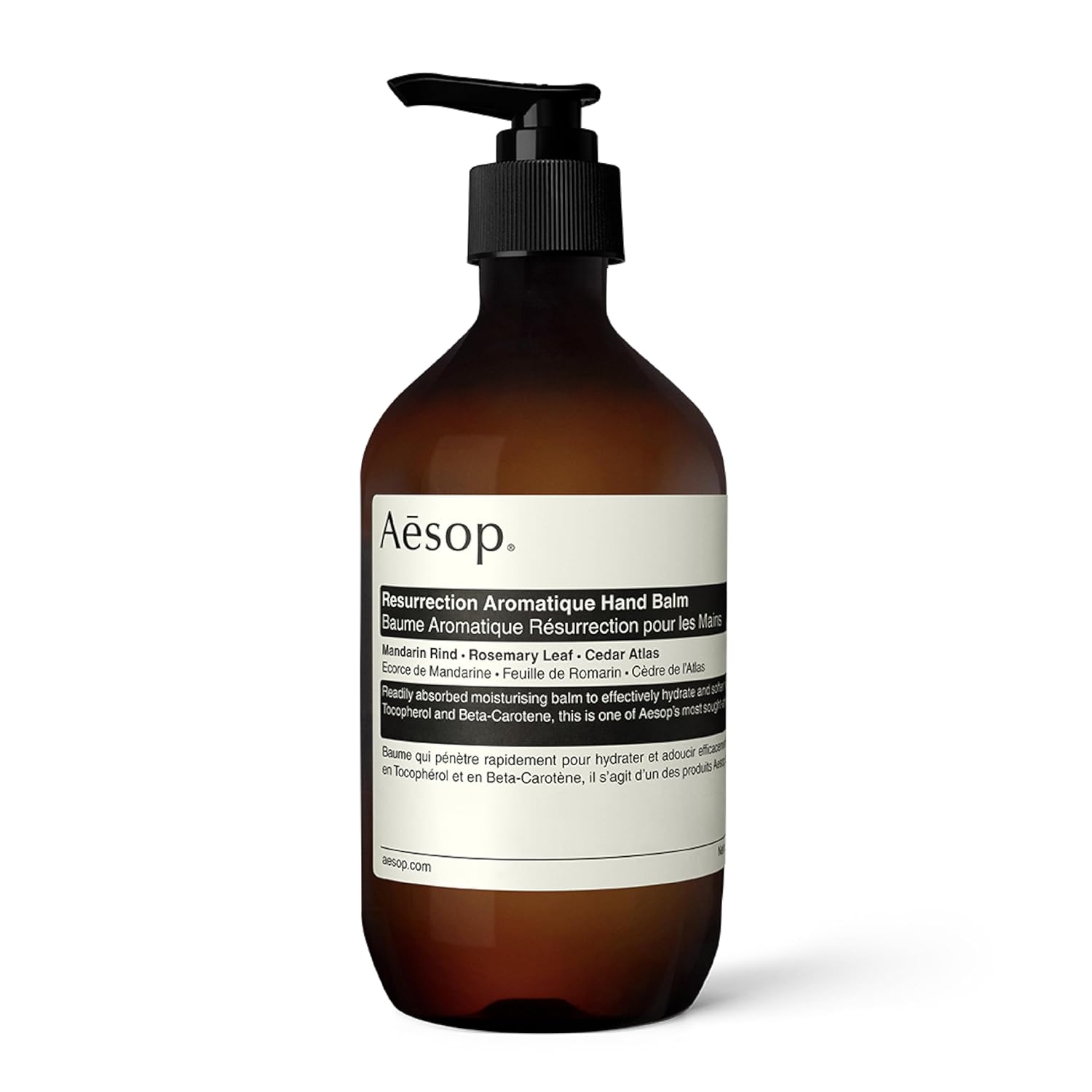 - Aesop Resurrection Aromatique Hand Balm: A blend of fragrant botanicals and skin-softening emollients that delivers rich hydration to labour-wearied hands and cuticles.