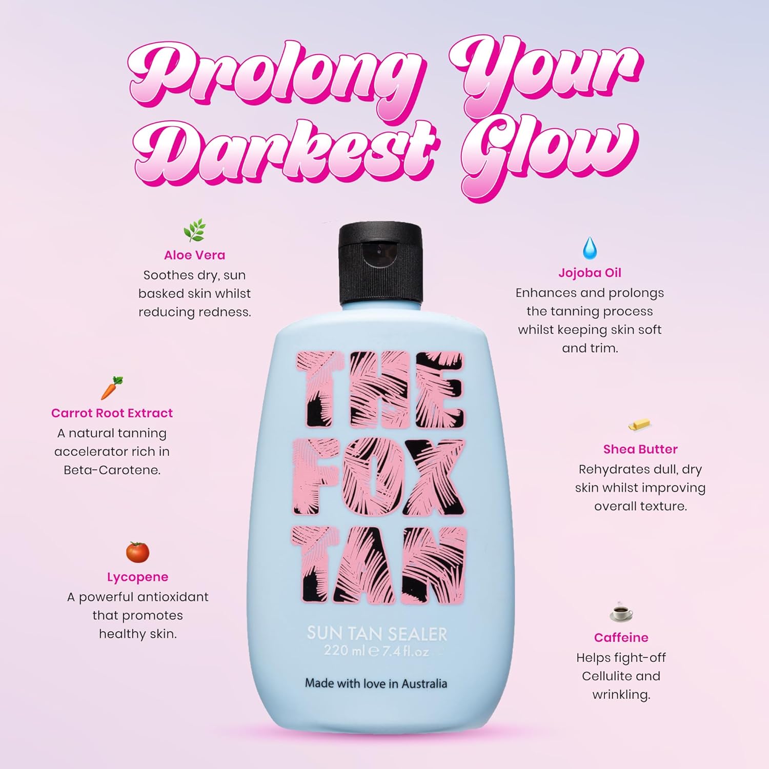 The Fox Tan Sun Tan Sealer, Moisture Rich Formula For Darker & Long-Lasting Tans, Creates Flawless, Glowing Skin, Vegan & Cruelty-Free, 220ml