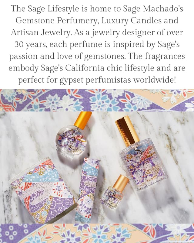 - [INGREDIENTS] Organic Fractionated Coconut Oil, Sage’s Signature Moonstone Perfume Oil Sage’s Gemstone Perfumes have been handcrafted by sourcing the highest quality essential oils from around the world using raw natural materials when possible, as well as sustainable, clean synthetics. Sage’s fragrances are highly complex and seamlessly blend with the wearer’s body chemistry. Organic Travel Friendly Vegan and Cruelty Free No Water or Alcohol Paraben and Phthalate Free Gluten Free Made with love in sunny California