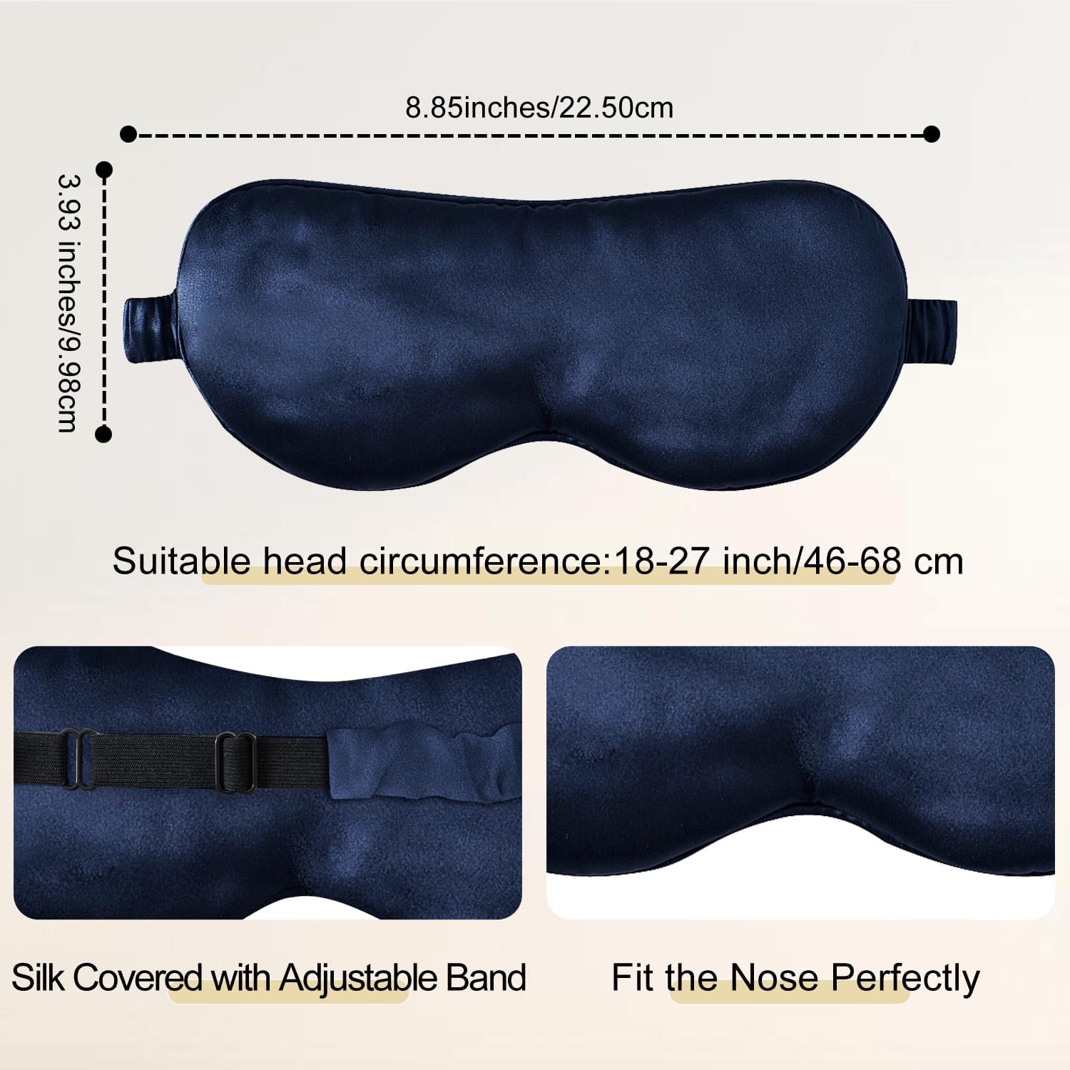 ZIMASILK Adjustable 100% 22 Momme Mulberry Silk Sleep Mask for Sleeping, Filled with Premium Mulberry Silk, Softest & Breathable Eye Sleeping Mask (Navy Blue)