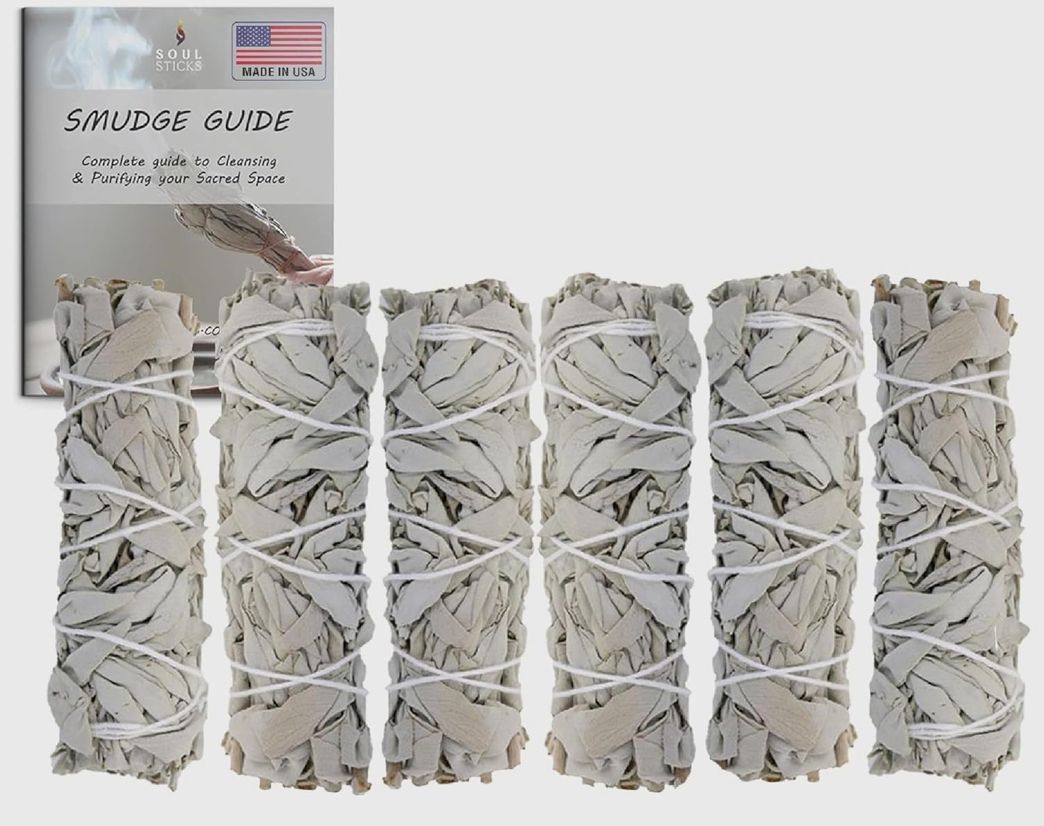 SOUL STICKS 4 Inch 6-Pack Organic California White Sage Smudge Sticks Bulk for Home Cleansing, Negative Energy Removal, Good Energy Meditation & Smudging Rituals | Pure Sage Bundles