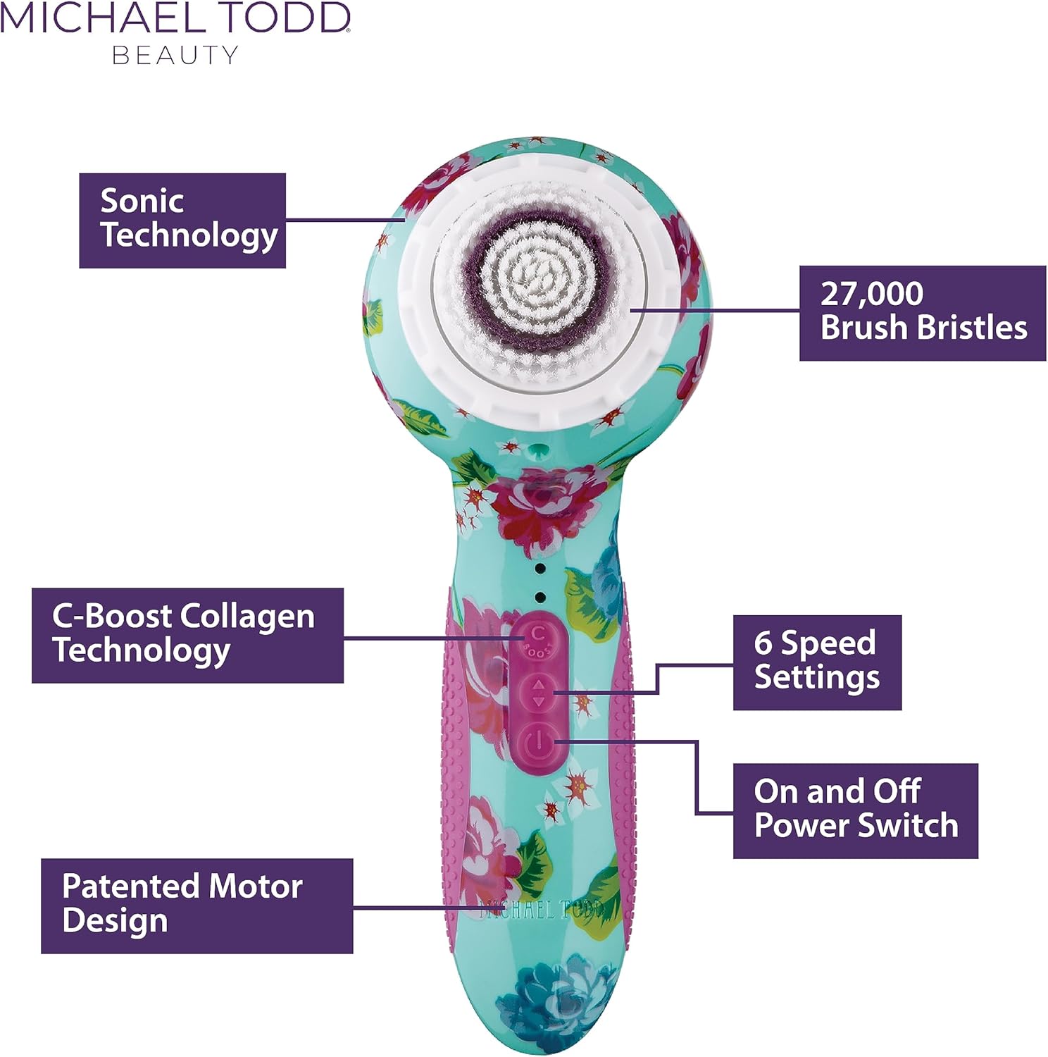 Michael Todd Beauty - Soniclear Elite - Facial Cleansing Brush System - 6-Speeds - Face Cleansing Brush & Exfoliating Body Scrubber