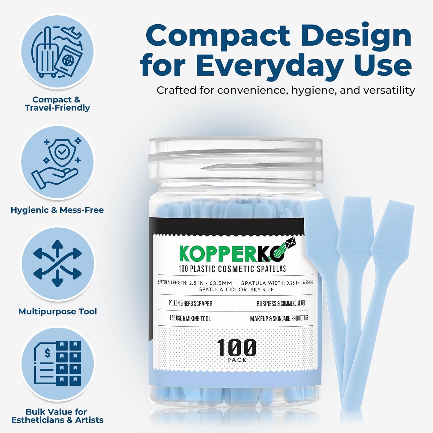 - Clean Out Your Containers: Maximize product use with our 100 pack of 0.25"x2.5" disposable makeup sample spatulas. Easily extract creams, lotions, or makeup from containers, even in tight spaces, without getting product under your nails