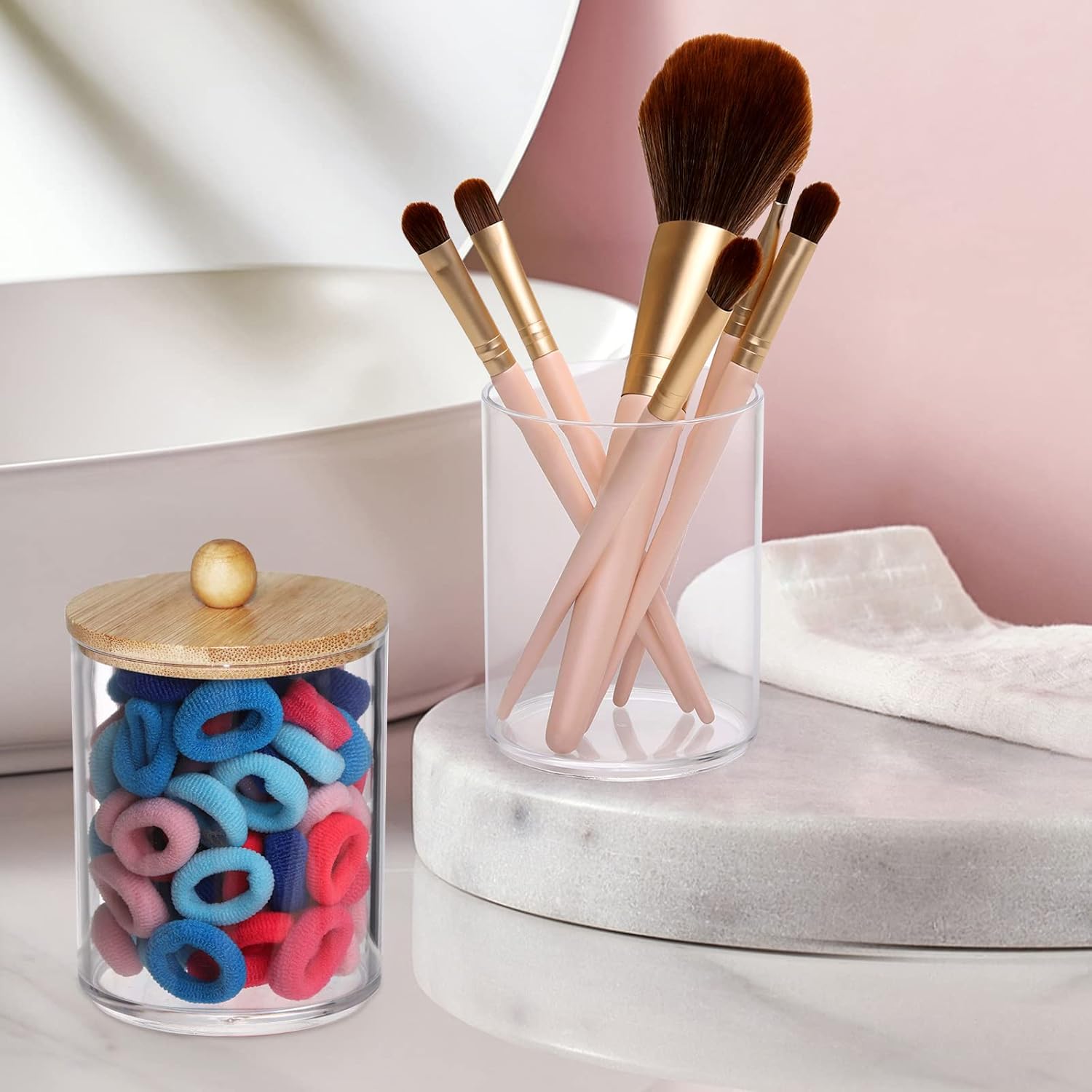 Tbestmax 10-Ounce Qtip Holder Bathroom Jars Canisters for Cotton Ball Swab Pad Storage Dispenzer, Bamboo Lid (2 Pack)
