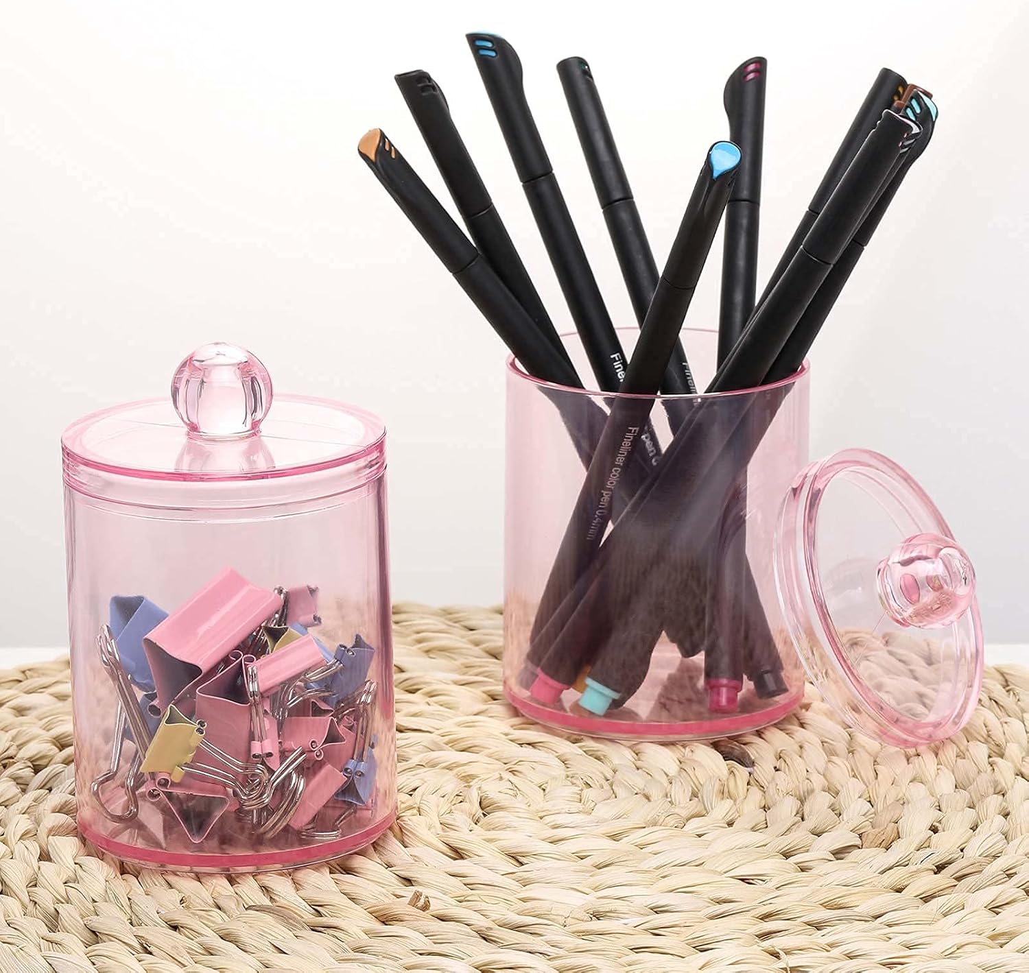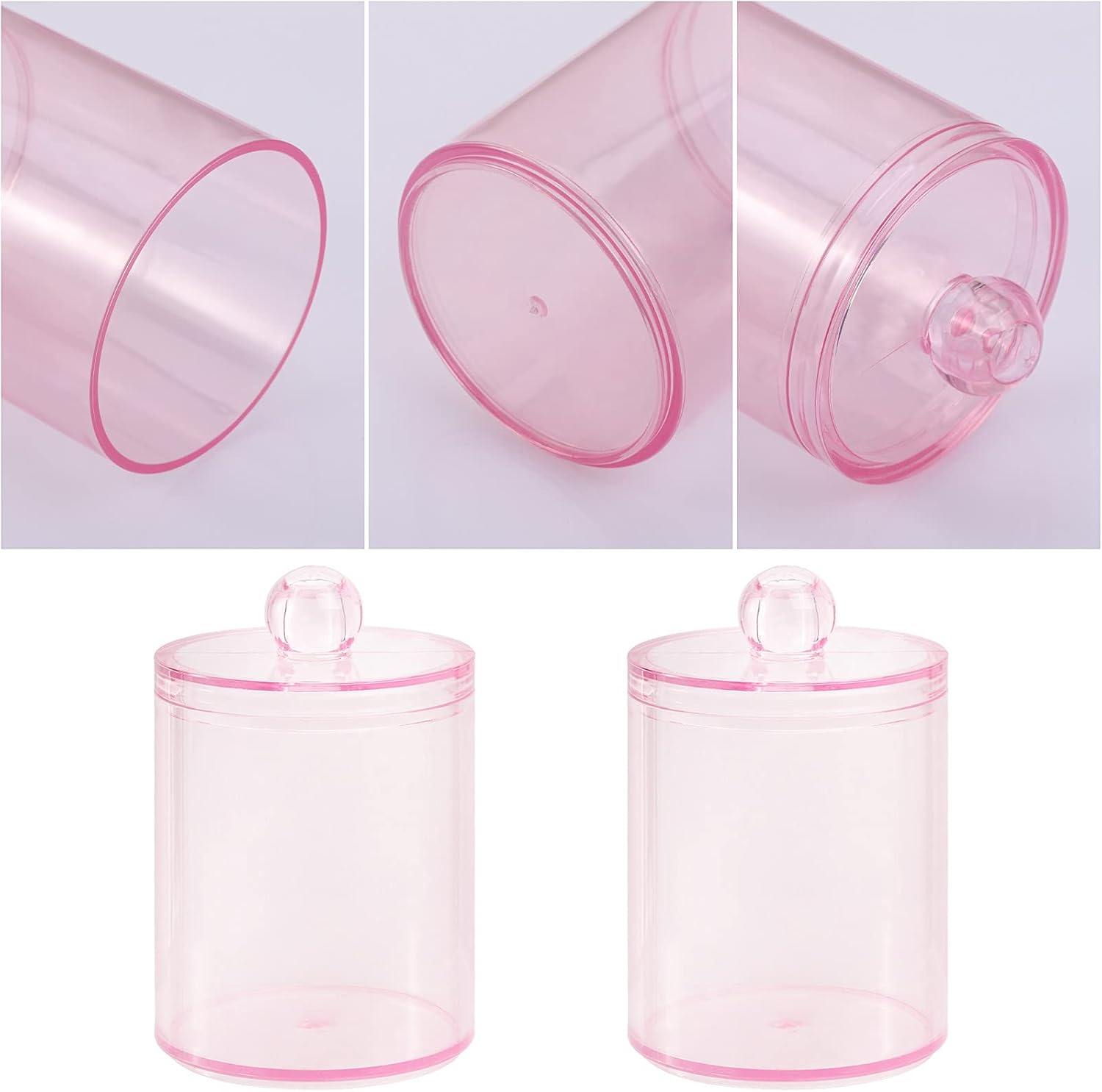 Tbestmax 2 Pack Qtip Holder Bathroom Jars Canisters for Cotton Ball Swab Pad Storage Dispenzer, Pink 10-Ounce