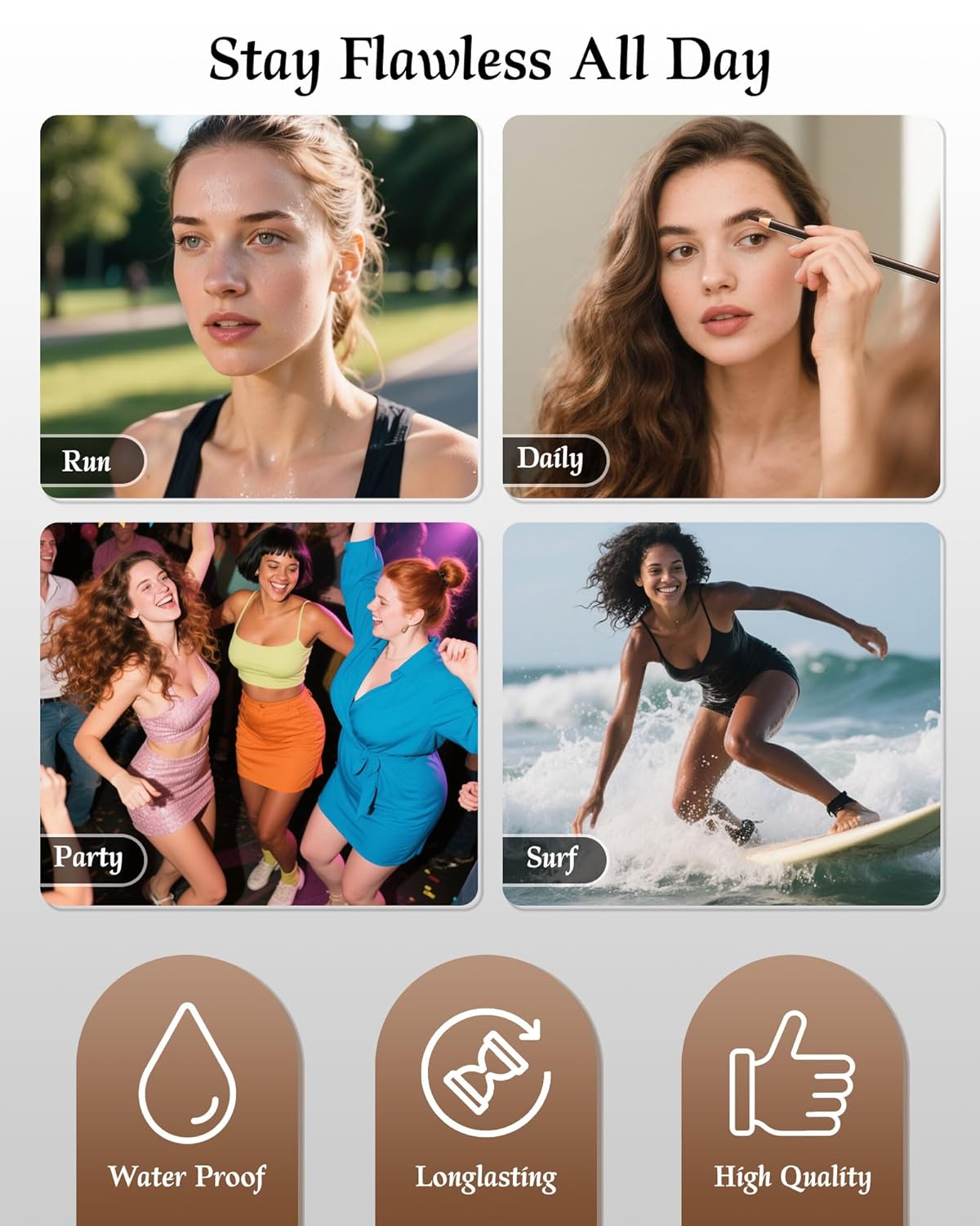- 16H Waterproof & Smudge-Proof Formula: Sweat-proof, humidity-resistant, and tear-proof! Our long-lasting eyebrow pencils lock in place through workouts, rain, or oily skin. Ideal for active lifestyles – zero fading, zero smudging, just flawless brows