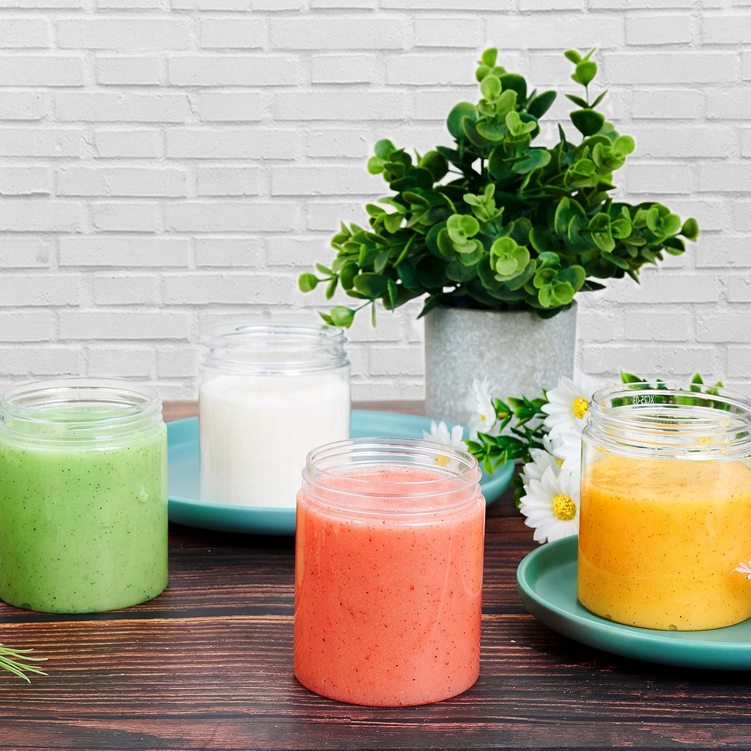- ★【LEAK PROOF AND AIRTIGHT】: Each Jar comes with a screw-on lids with foam liners which creates an airtight seal when the lid is securely screwed onto the container. You do not need to worry about leakage, especially when you carry them in your bags. Plastic container jars with black lid and transparent clear bottom, lovely in appearance. See-through plastic jars display your contents.
