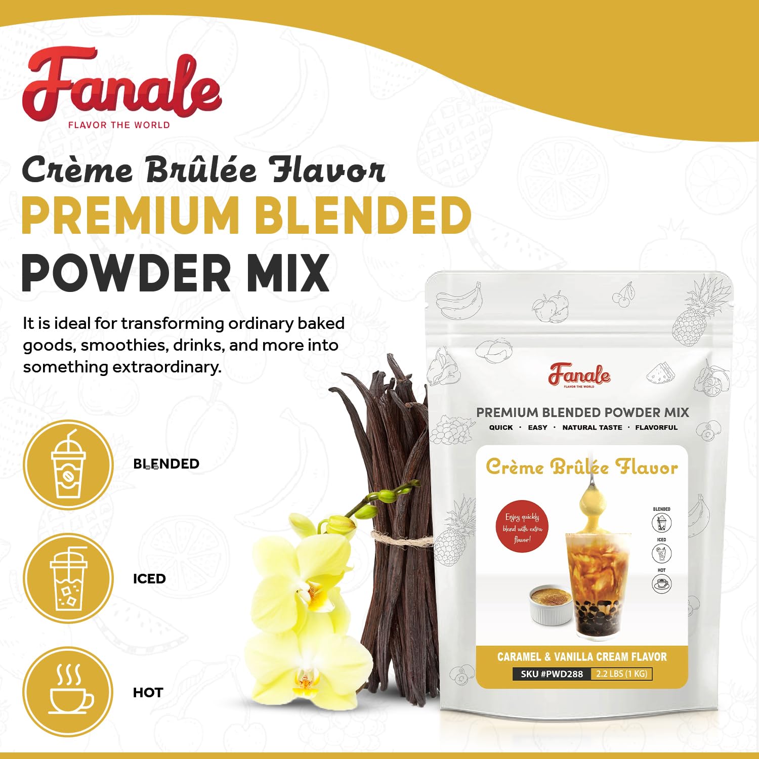 Fanale Premium Creme Brulee Bubble Tea Flavoring Powder | Perfect for Baking, Smoothies, Desserts and Drinks | Instant Flavoring Powder for Boba Milk Tea - 2.2 lb 1kg | PWD288