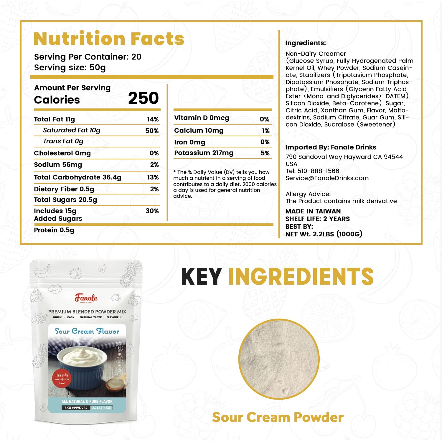 Fanale Premium Sour Cream Bubble Tea Flavoring Powder | Perfect for Baking, Smoothies, Desserts and Drinks | Instant Flavoring Powder for Boba Milk Tea - 2.2 Pounds (Pack of 1)