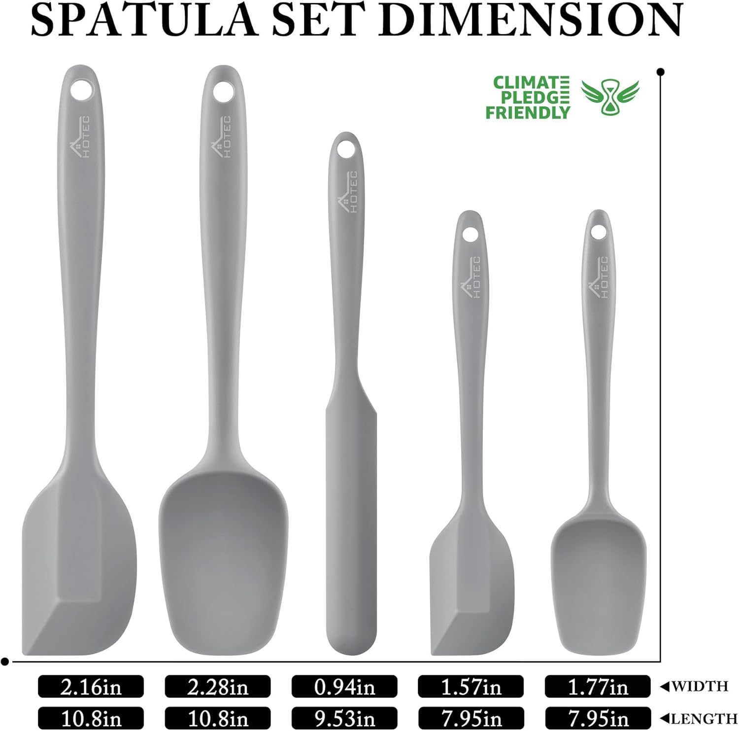 HOTEC 600℉ Heat Resistant BPA-Free Silicone Rubber Spatula Set,Kitchen Cooking Spatulas, Baking, Mixing for Non Stick Cookware, Dishwasher Safe, Set of 5 Grey