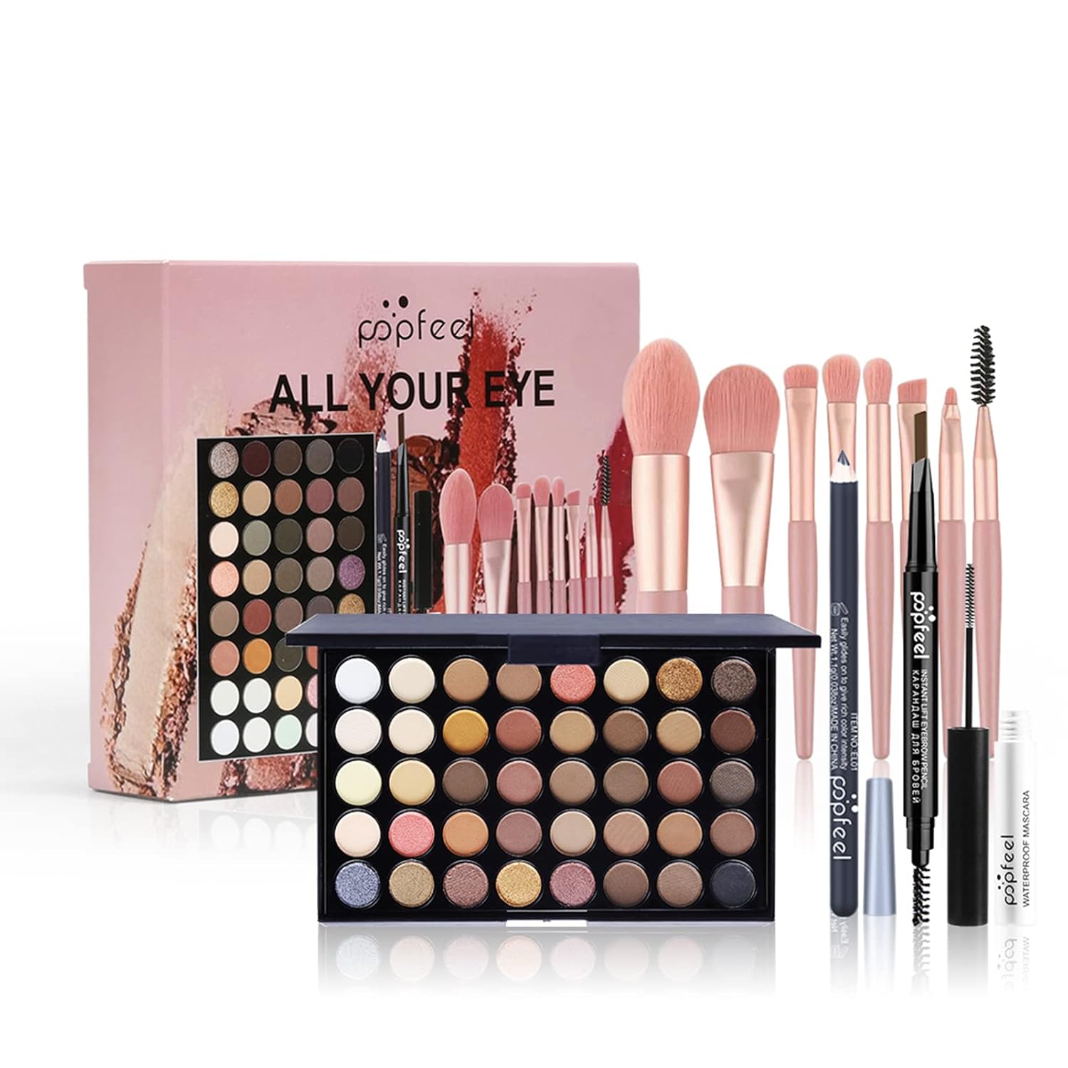- π γ ALL IN ONE MAKEUP KIT γ -- Contains a wide variety of shades and styles, to let you find the look that suits you best. Feel light and soft, easily create clear and brilliant makeup finish. Transforming any night out into a fabulous affair with this dazzling range. Suitable for those aged 12 and upwards and created using neutral ingredients, our eyeshadow is designed to be kind to skin of all ages. All women's essentials in one elegant box and a great gift for any occasion.