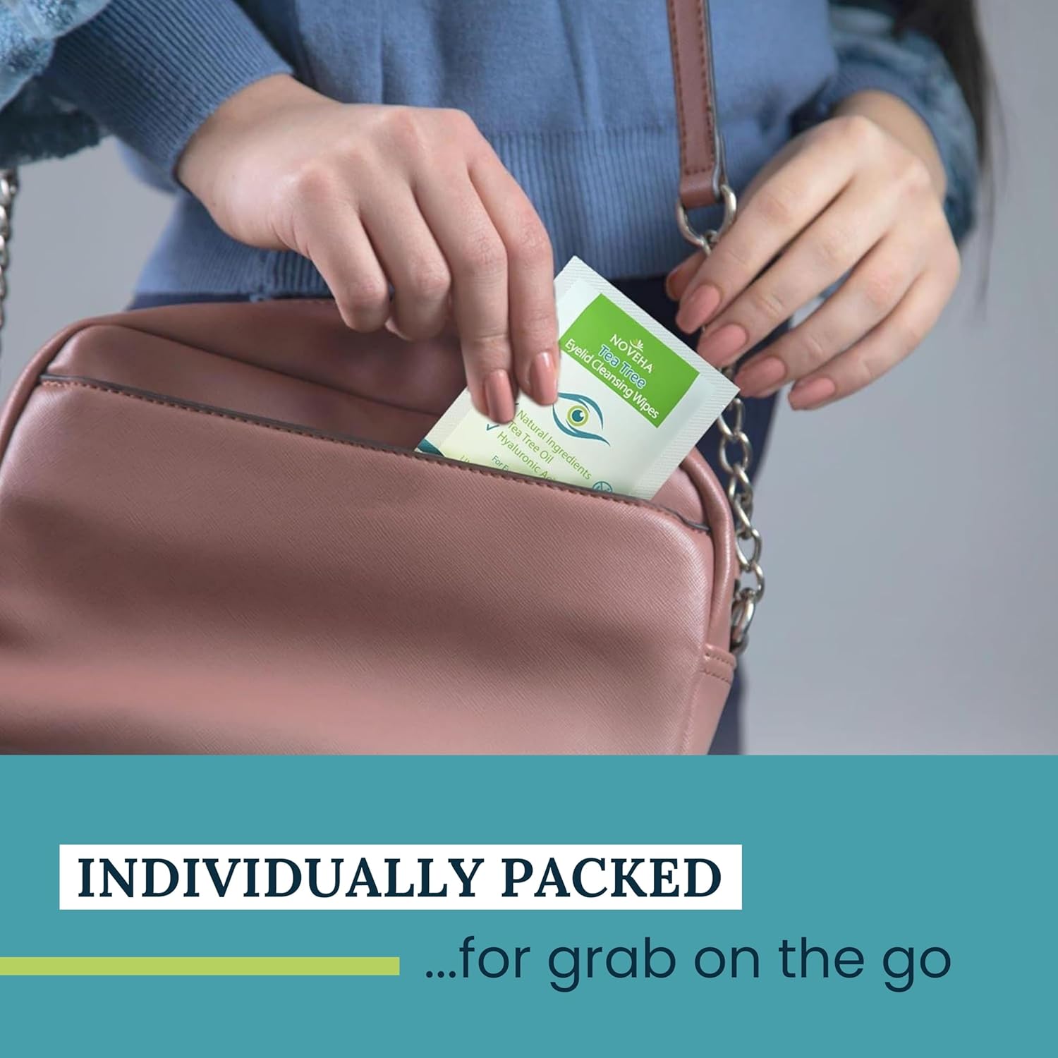 NOVEHA Tea Tree Oil Eyelid & Lash Wipes With Hyaluronic Acid, Green Tea & Chamomile For Blepharitis & Itchy Eyes, Individually Wrapped Eyelash Wipes Natural Makeup Remover & Daily Cleanser (Pack of 3)