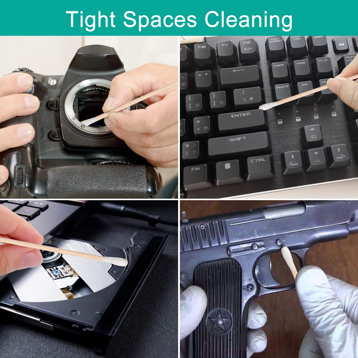 - Durable Bamboo Sticks: Strong cotton swabs with wooden sticks that resist breaking; perfect for gun cleaning, pet care, and various household uses