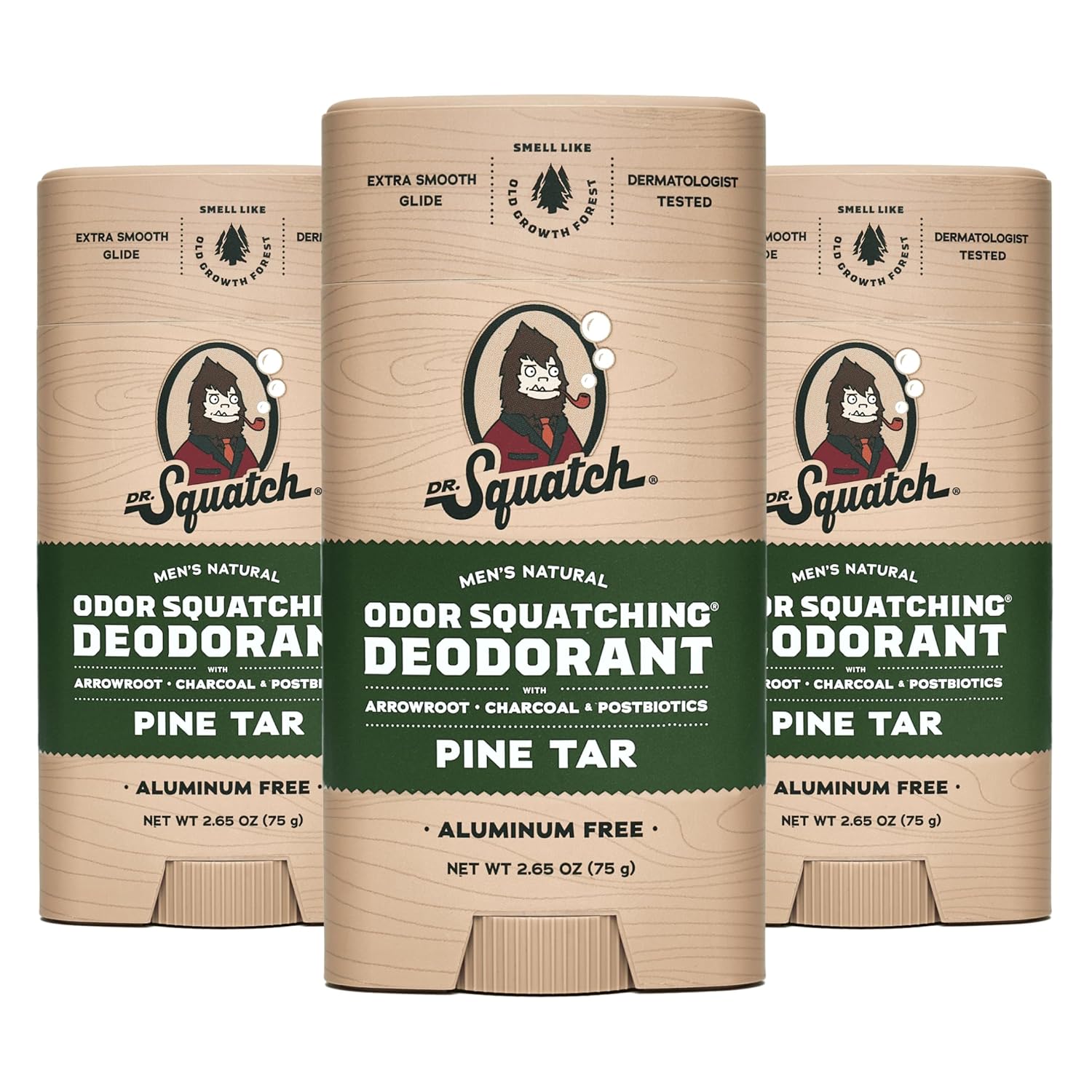 Dr. Squatch Natural Deodorant for Men - Odor-Squatching Aluminum Free - Pine Tar (2.65 oz, 3-Pack)