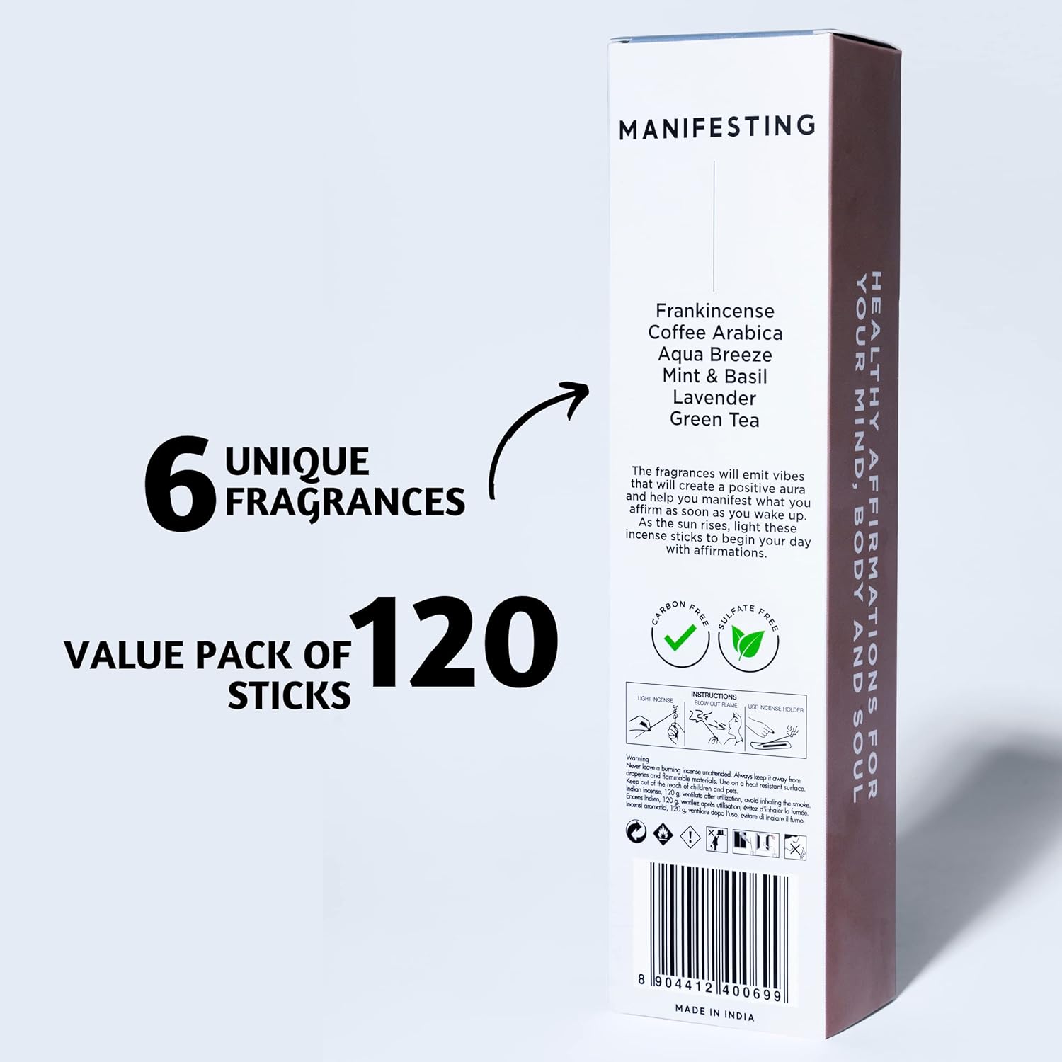 Folkulture Incense Sticks | Set of 6 (120 Non Toxic Insence-Sticks) for Manifesting with 45 Mins Burn Time | Frankincense, Coffee, Aqua Breeze, Mint and Basil, Lavender, Organic Inscents-Sticks