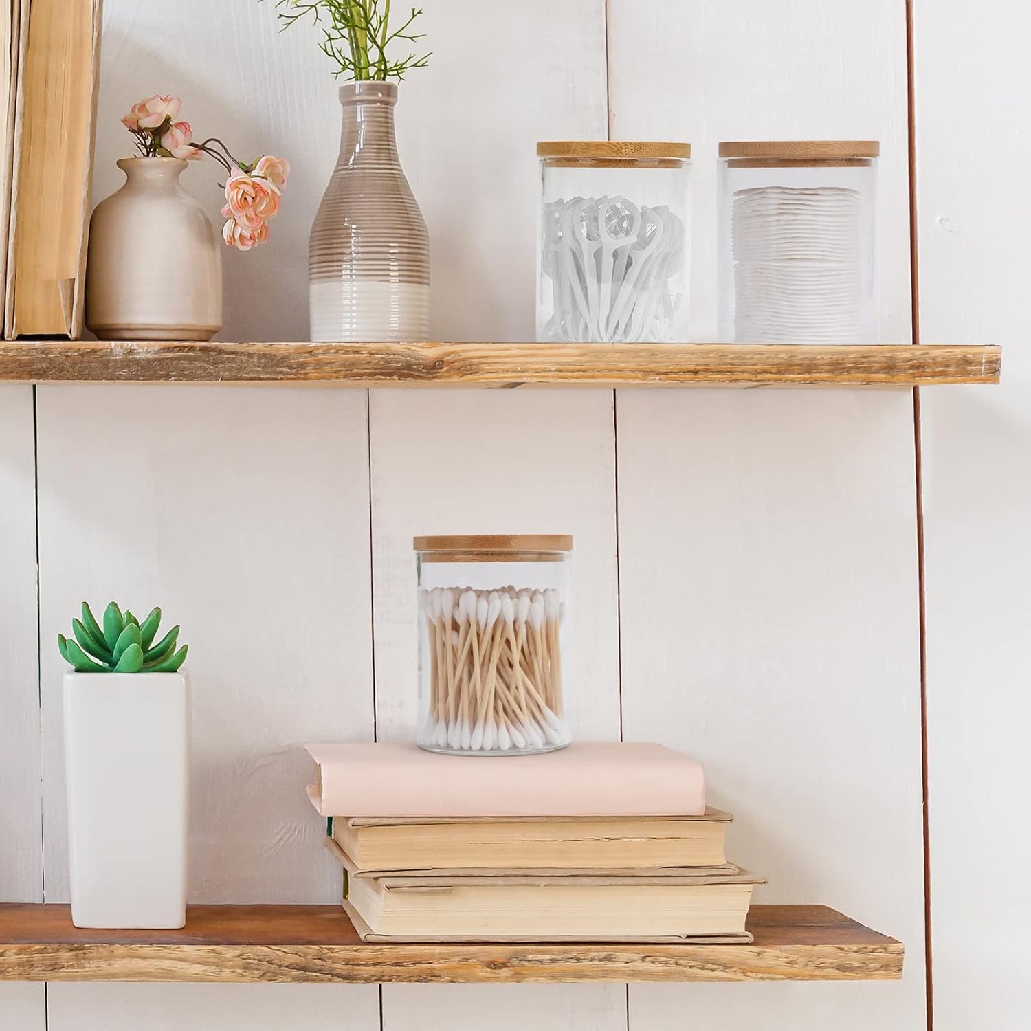 - Versatile Bathroom Accessories: Each jar in this bathroom accessory set is ideal for organizing cotton balls, cotton swabs, and other bathroom essentials. Their practical design ensures easy access and promotes neat organization, making them perfect for your bathroom decor and storage needs.