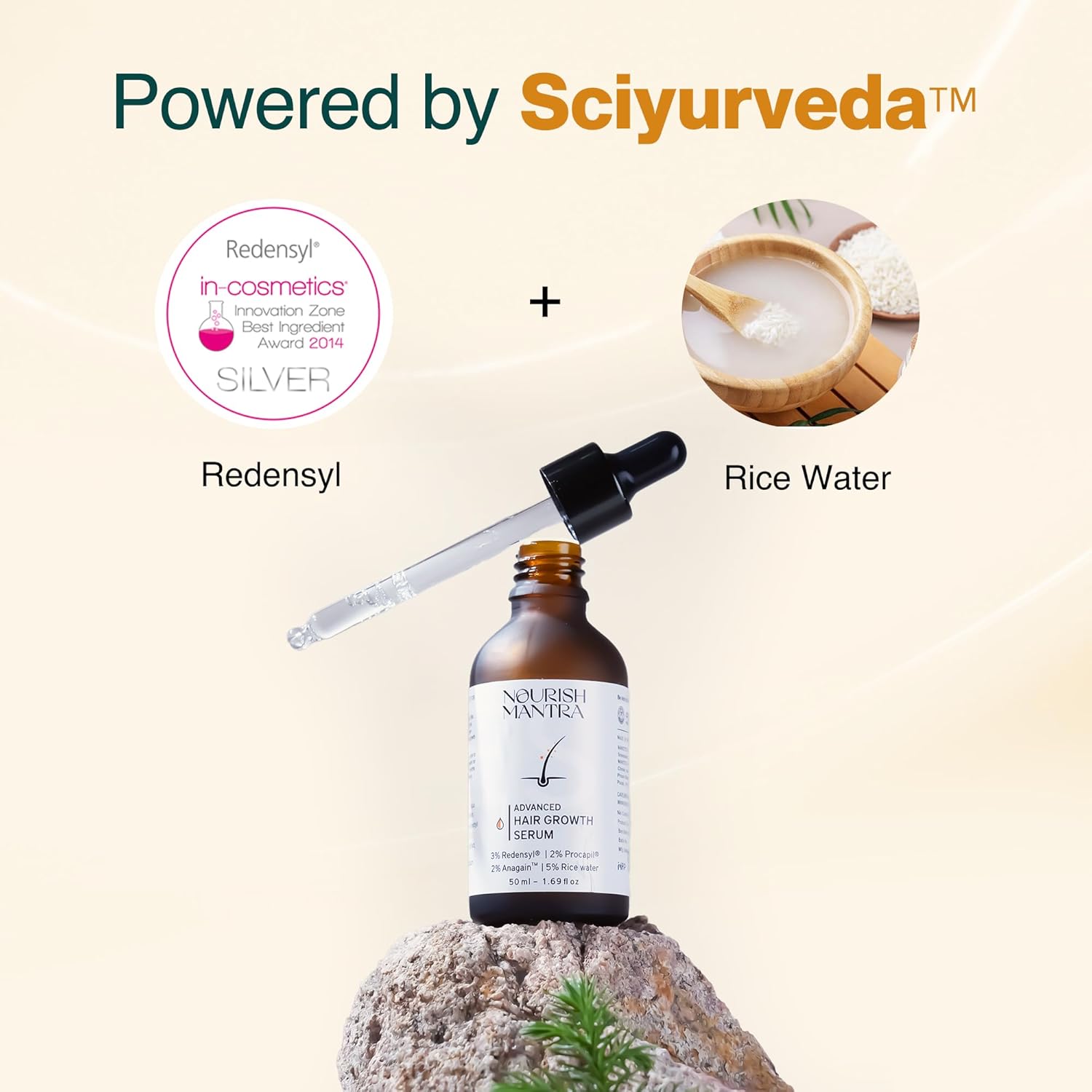 Nourish Mantra Advanced Hair Growth Serum 50ml, 3% Redensyl, 2% Anagain, 2% Procapil, 5% Rice Water, Promotes Hair Regrowth, Anti Thinning & Hair Loss Treatment,Rapid Hair Growth Serum for Women & Men