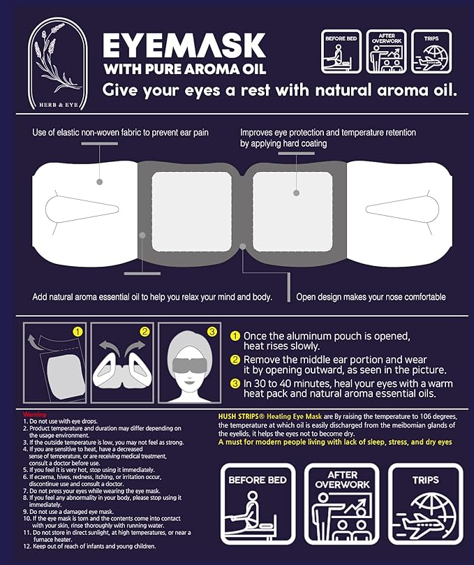 • Optimal Eye Health: Do you struggle with puffiness, dry eyes, or dark circles around your eyes? Invigorate and rejuvenate your skin in just 25 minutes with Hush Strips pure disposable steam eye mask!