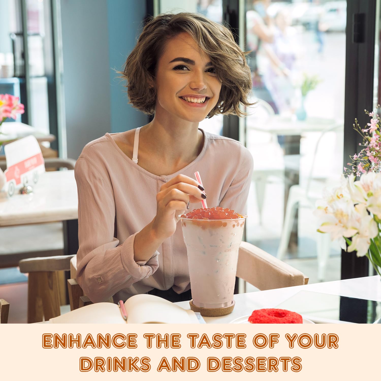 - 𝐈𝐝𝐞𝐚𝐥 𝐓𝐨𝐩𝐩𝐢𝐧𝐠: Fanale Drinks Popping Boba Pearls are the ideal topping for desserts and drinks. They are a perfect addition to your smoothie, iced coffee, soft drink, shake, ice cream, frozen yogurt, and other desserts for extra flavor.