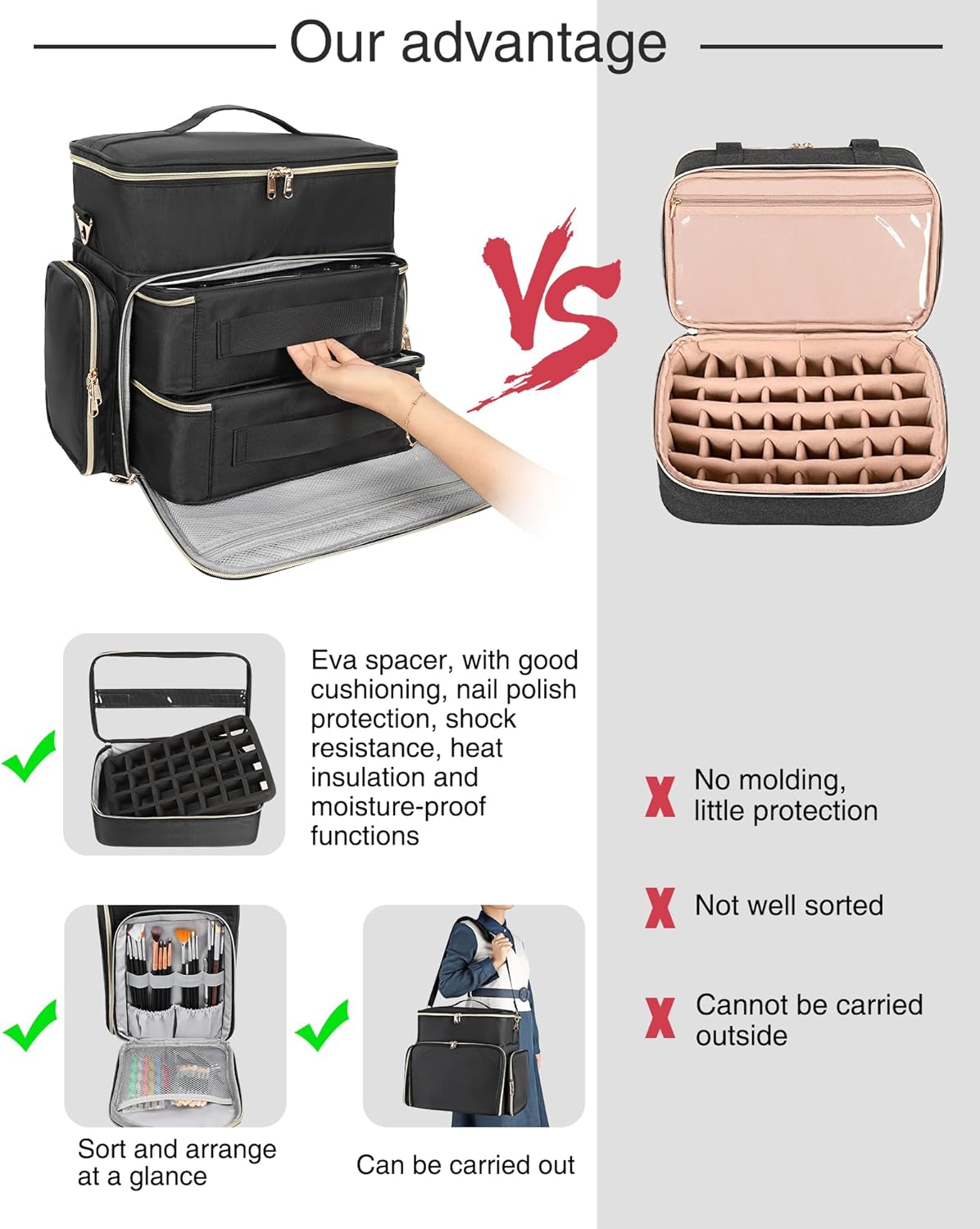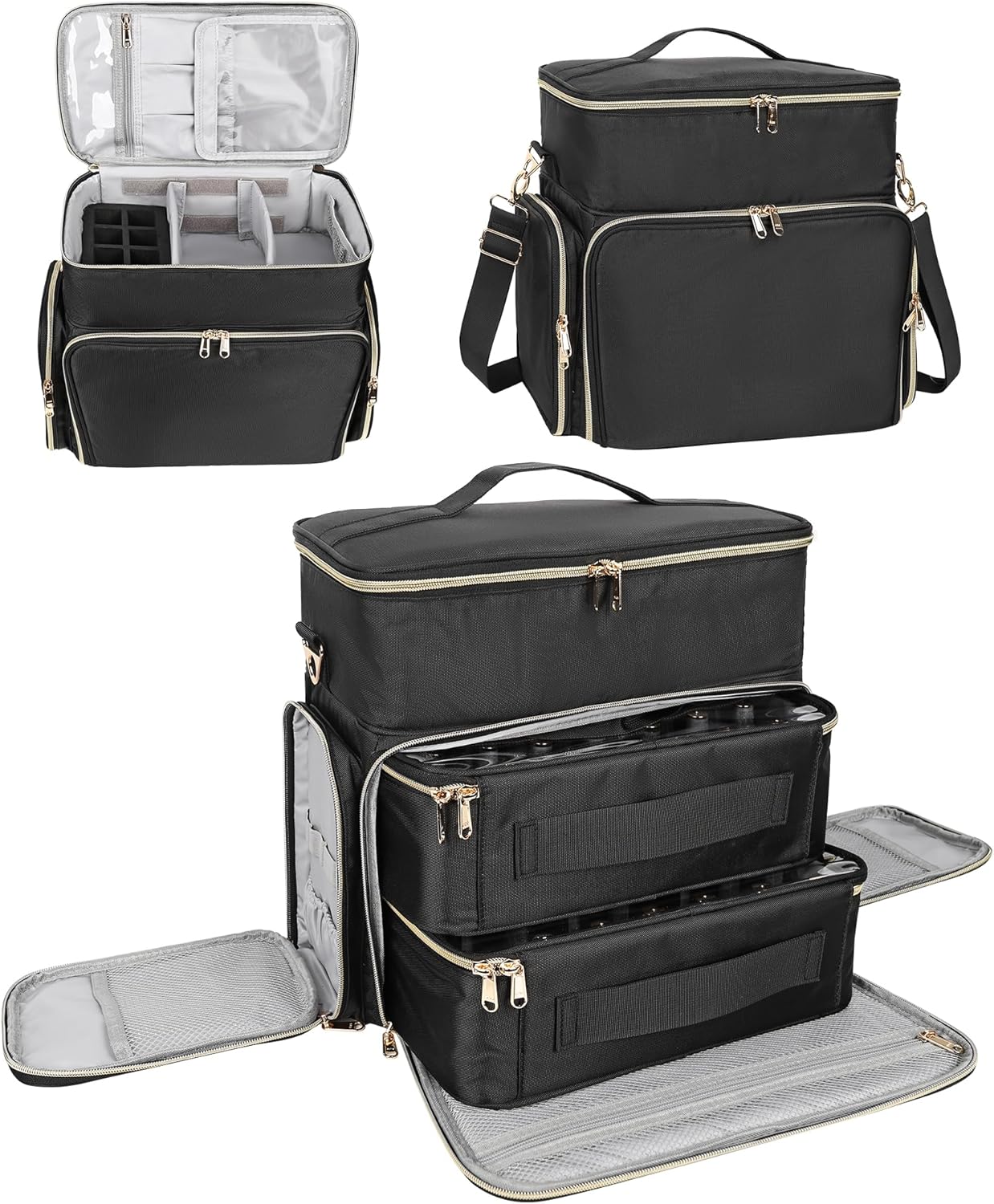 - Detachable Layer: A great nail organizers and storage for nail tech with 3 detachable layer. 2 nail polish organizer cases and the upper layer with adjustable dividers and can be used as a separate storage case.