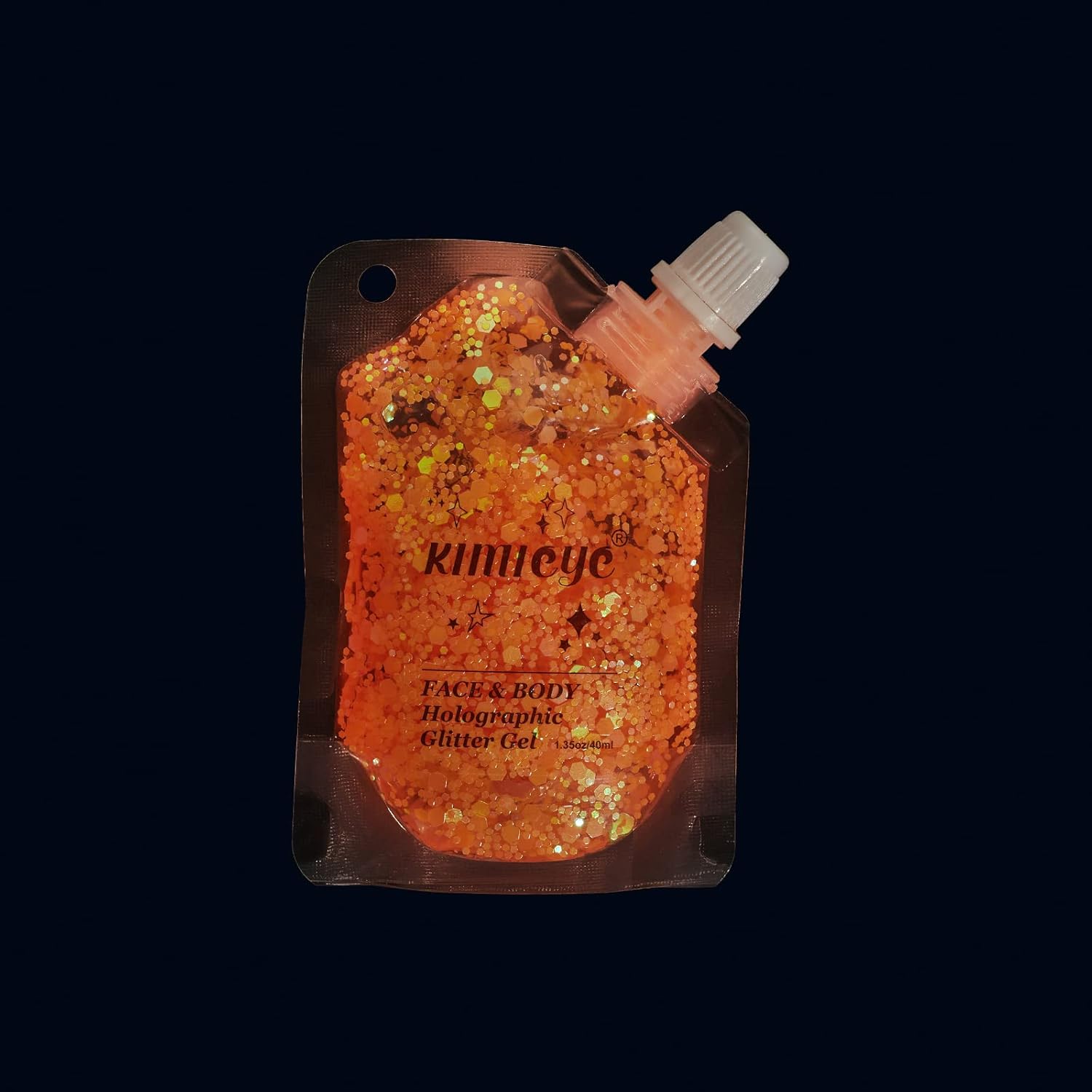 Holographic Face Glitter Gel Body Shimmer Makeup for for Hair, Face, Clavicle, Arm, Nail, Eyeshadow, Long Lasting Waterproof Mermaid Sequins Party Glitter for Rave Festival, 1.35oz (Luminous Orange)
