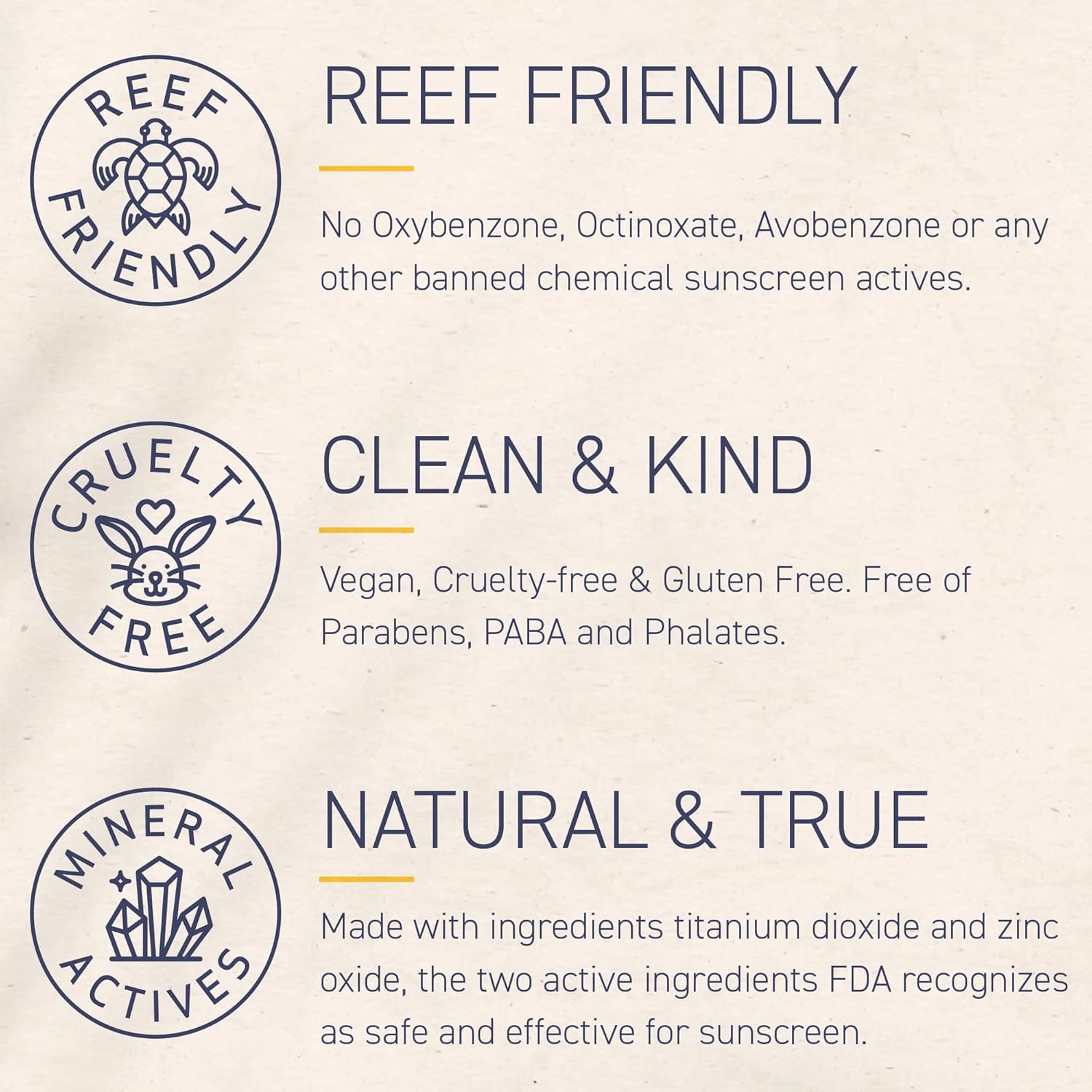 - Human and Animal Friendly: Cruelty-free and Vegan, our reef-friendly sunscreen formula contains no Chemical sunscreen actives (like Oxybenzone, Octinoxate) and no nano sized particles