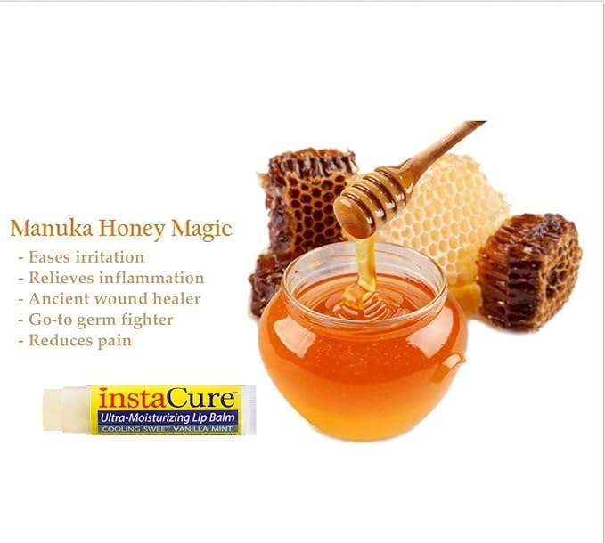 InstaCure Original Nose Balm With Raw Manuka Honey Vitamin E Shea Butter Aloe Vera Oil And Vanilla Mint Ultra-Moisturizing Max Repair/Protective Lip Balm - Fast Relief for Dry Nose & Soreness (3 Pack)