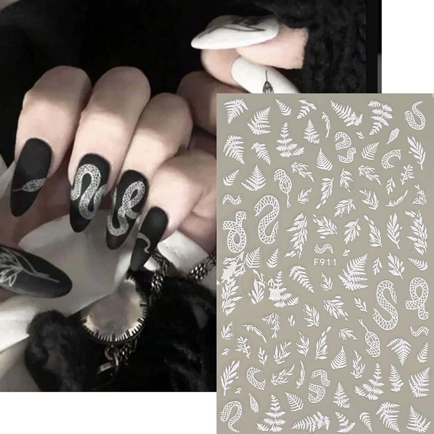 7 Sheets White Nail Art Stickers Butterfly Snake 3D Self-Adhesive Nail Decals Summer Stars Sun Line Designs Nail Decorations Moon Leaf Rose Nail Accessories for Women Girls DIY Manicure Supplies