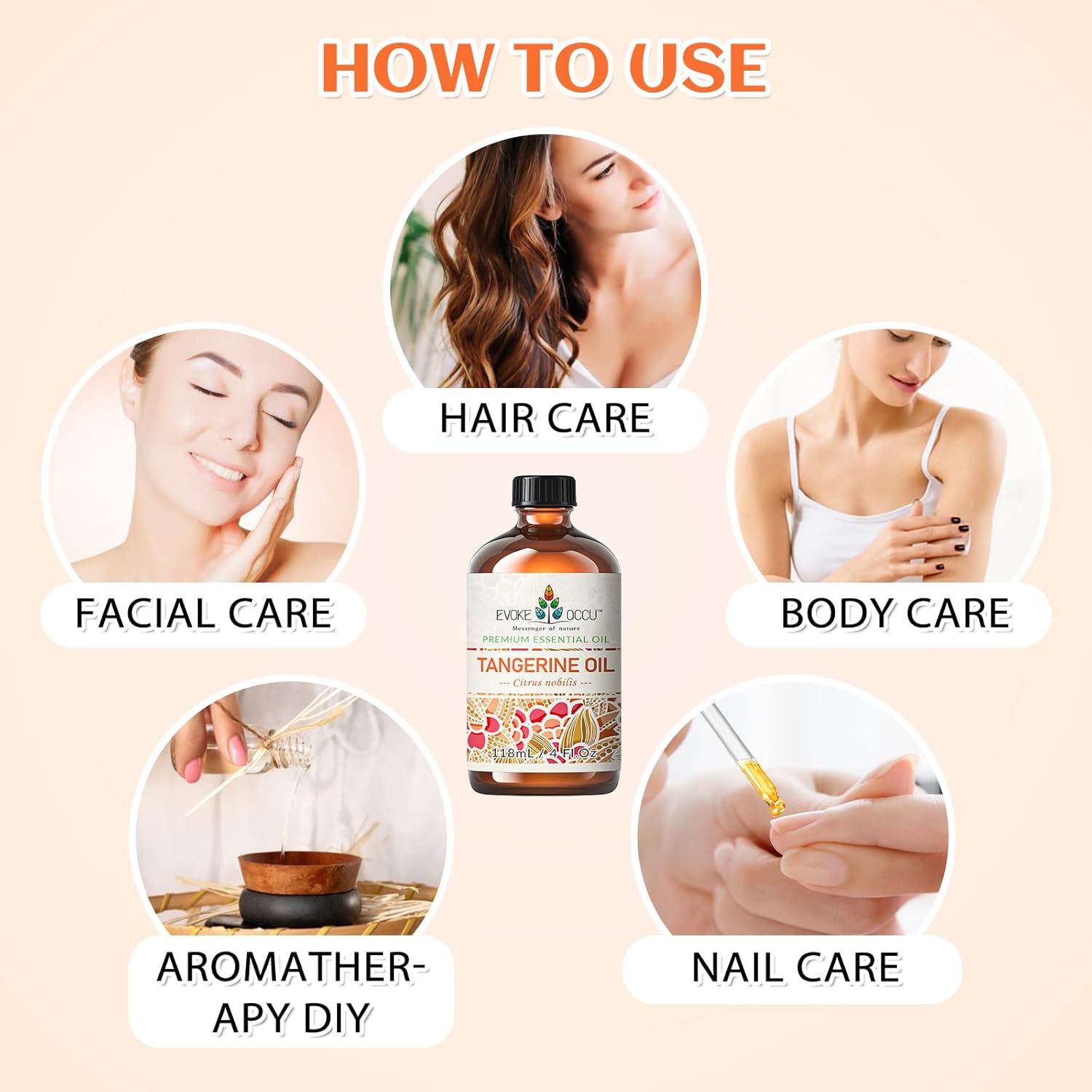 EVOKE OCCU Tangerine Essential Oil for Diffuser Fragrance DIY Candle Soap Making - 4 FL Oz
