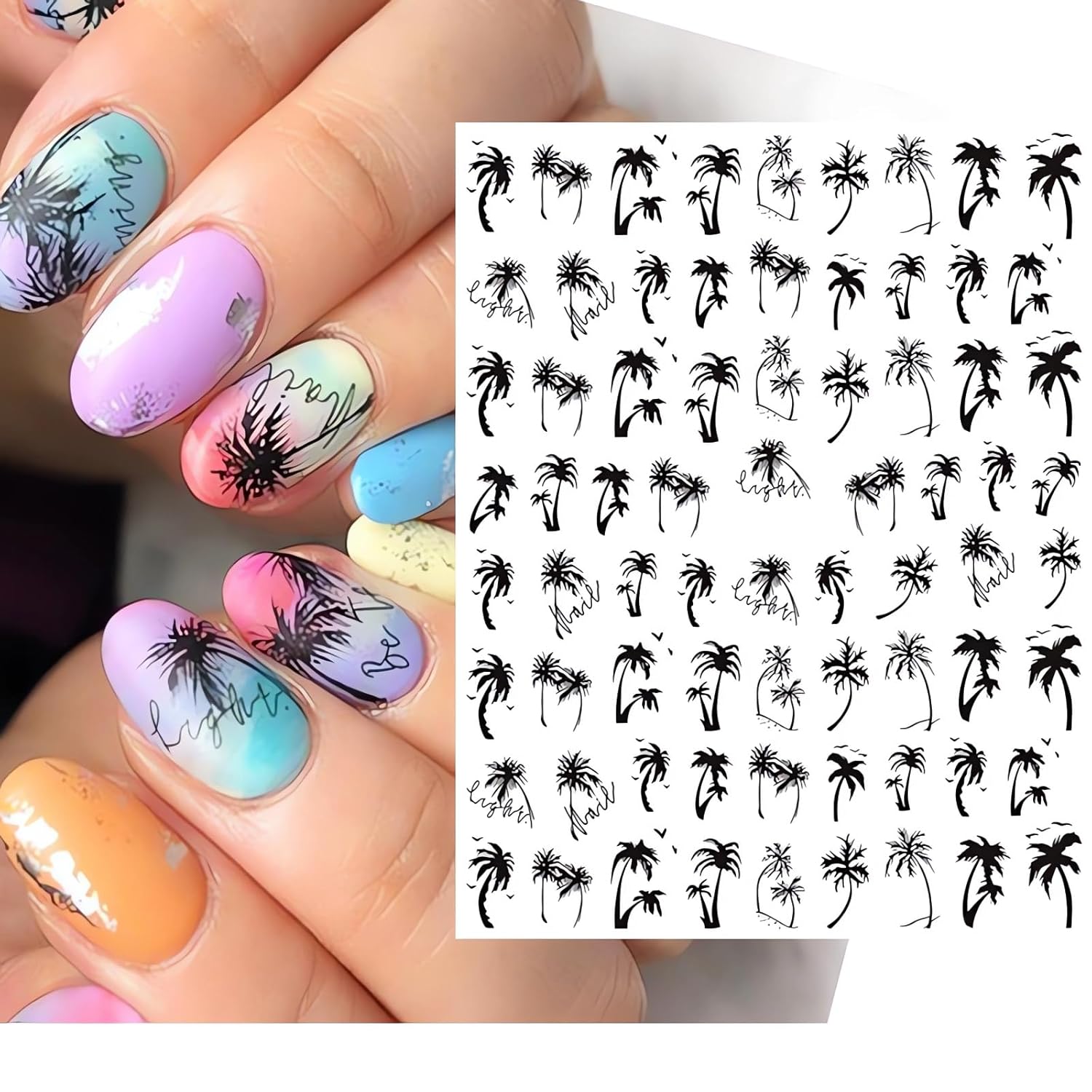 8 Sheets Nail Art Stickers Summer Beach Palm Coconut Tree 3D Self-Adhesive Nail Decals Tropic Plantain Leaf Fruit Sunflower Designs Nail Decorations DIY Acrylic Nail Supplies for Women Girls Manicure Art