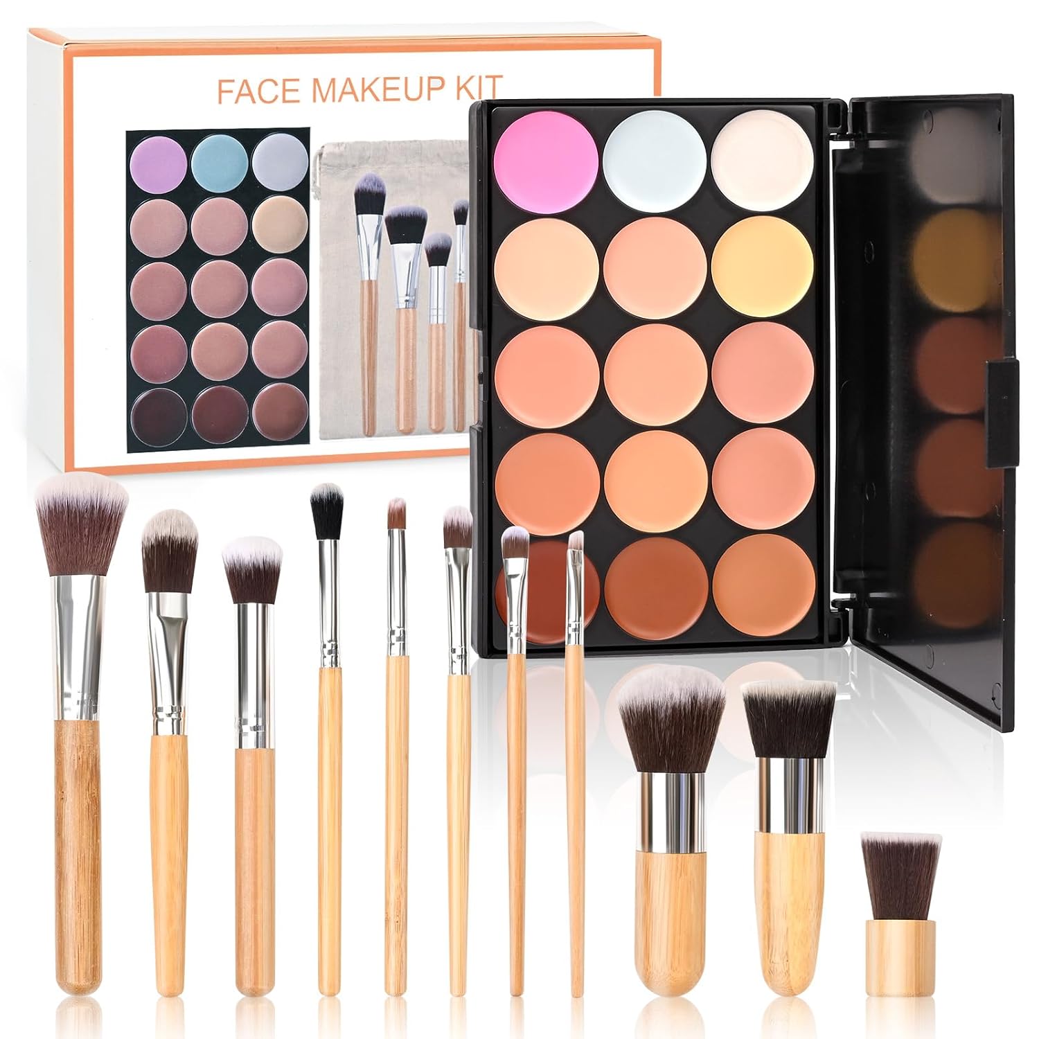 - Color : 15 color concealer palette + makeup brushes