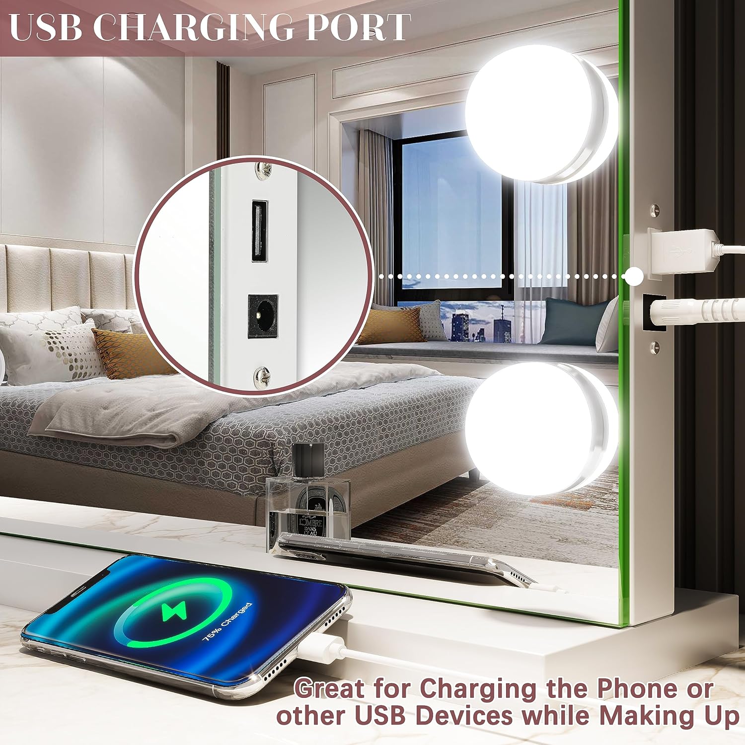 - 【TABLETOP & WALL MOUNTED】 This hollywood makeup mirror is designed with a detachable base and screws, making it easy to secure the mirror in place. The vanity mirror also has 2 back holes for wall mounting on bedrooms or bathrooms while saving desk space.