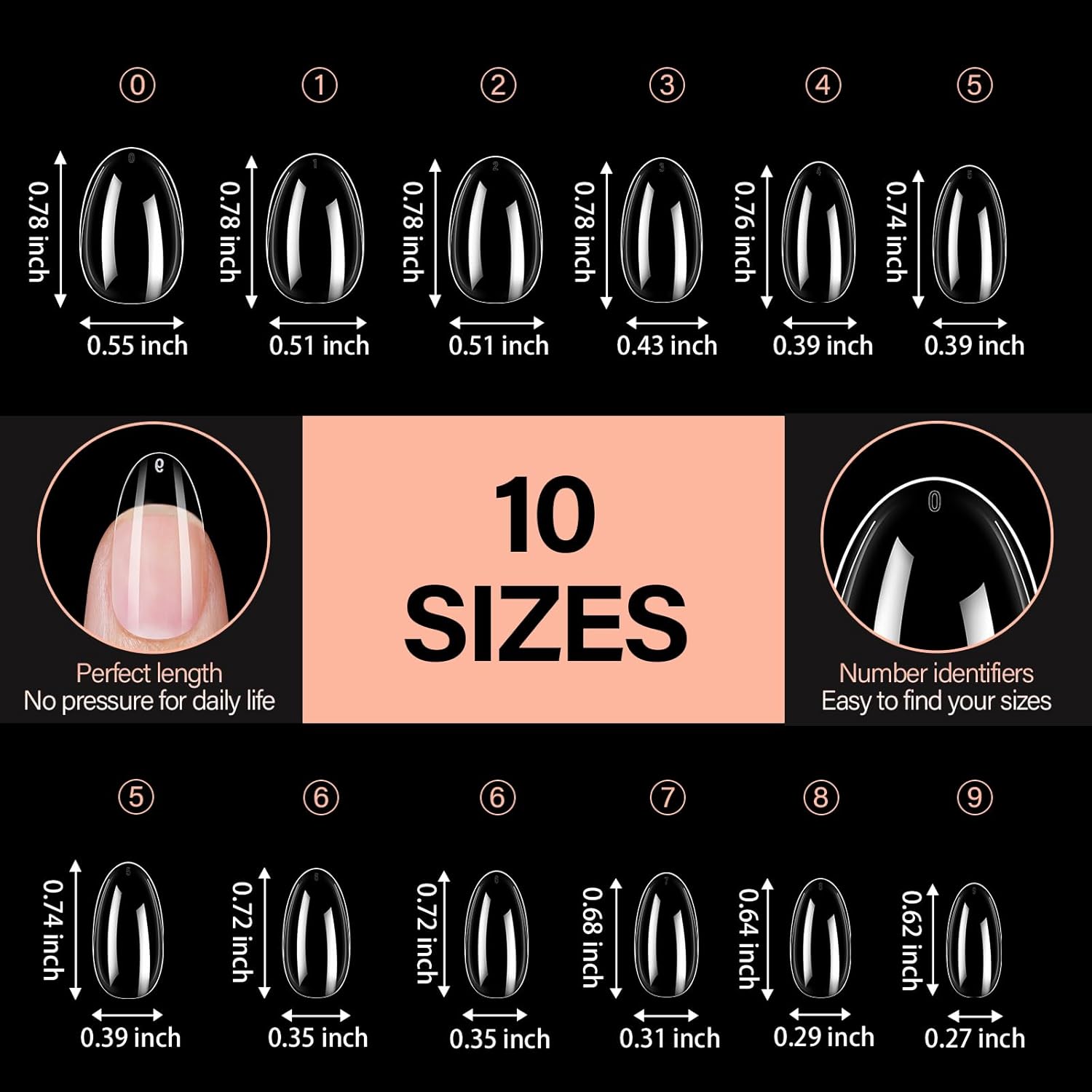 AILLSA Short Almond Nails 504PCS Clear Gel Nails Tips Press on False Soft Nails Tip Full Cover Fake Gelly Nails Tips for Nail Extension DIY Home Salon Gift, 10 Sizes Preshaped Nail Tips