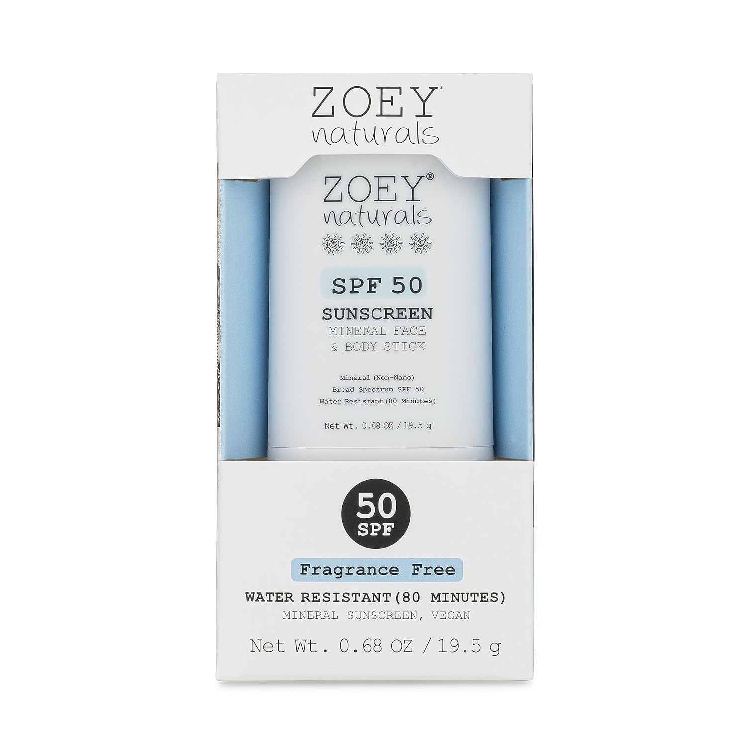 Zoey Naturals SPF 50 Mineral Sunscreen Stick for Babies & Kids - Safe Sunblock Moisturizer for Body & Face - with Rose Hips Oil, Zinc Oxide, Cruelty Free and Reef Safe, Made in USA