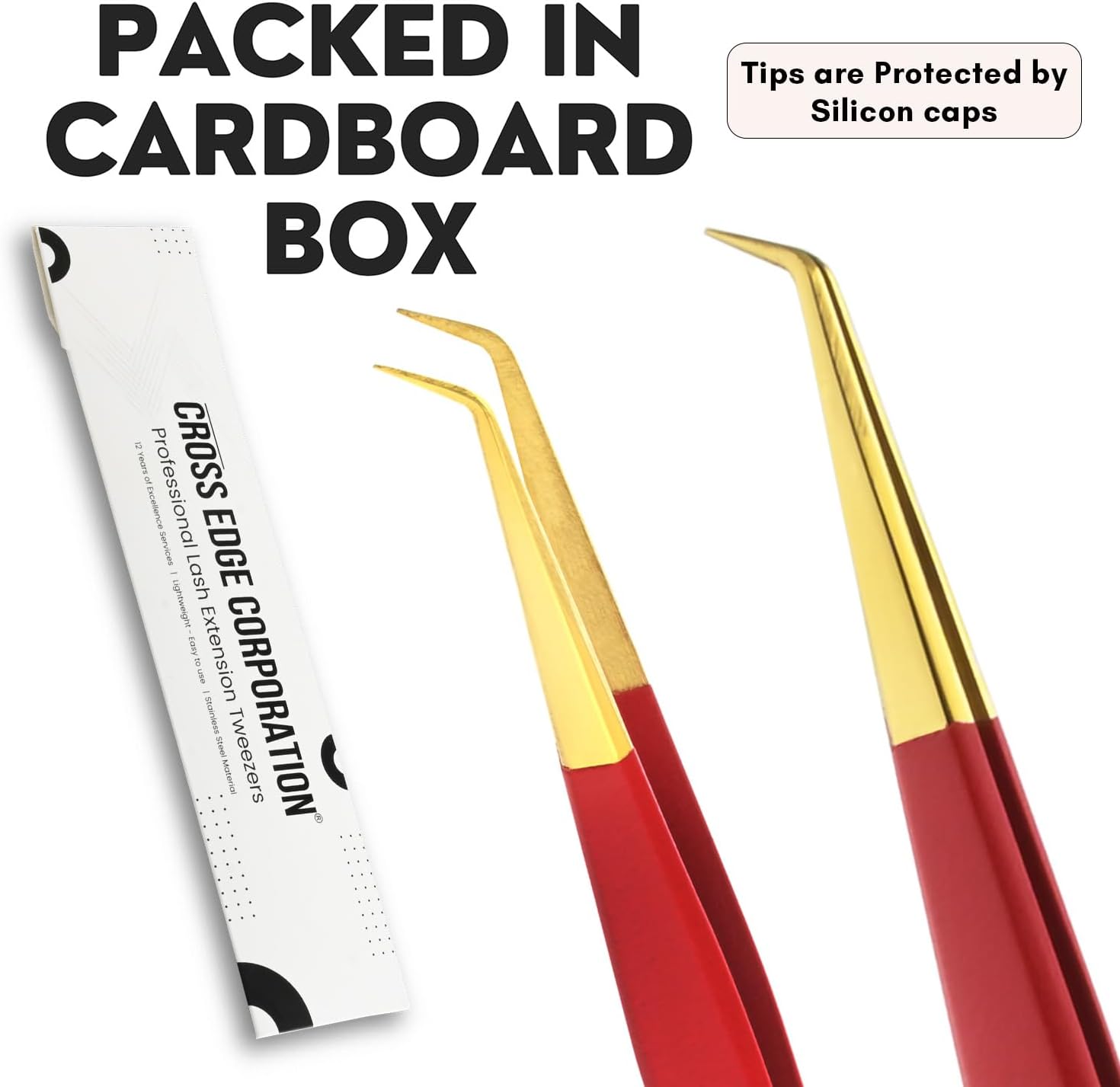 Isolation Tweezers for Eyelash Extension – 14cm Curved, Matte Red with Gold Tip, Stainless Steel, Best for Individual Isolation & Classic Lashes, Pinzas para Pestaña (Matte Red Gold Tip)