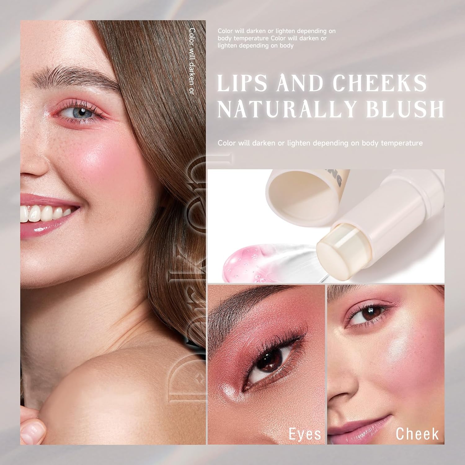 - 【Temperature Changing &Natural】It has a natural texture and blends well into the skin, making you look younger and more energetic. After applying,it will change to different pink according to your different ph.Suitable for lips,cheeks or eyeshadow.Made of mild and non-irritating materials. It contains no fragrance, coloring and foaming agent, so it will not leave unwanted residue on the face. Use a moisturizer before applying a blush stick for even more effect.