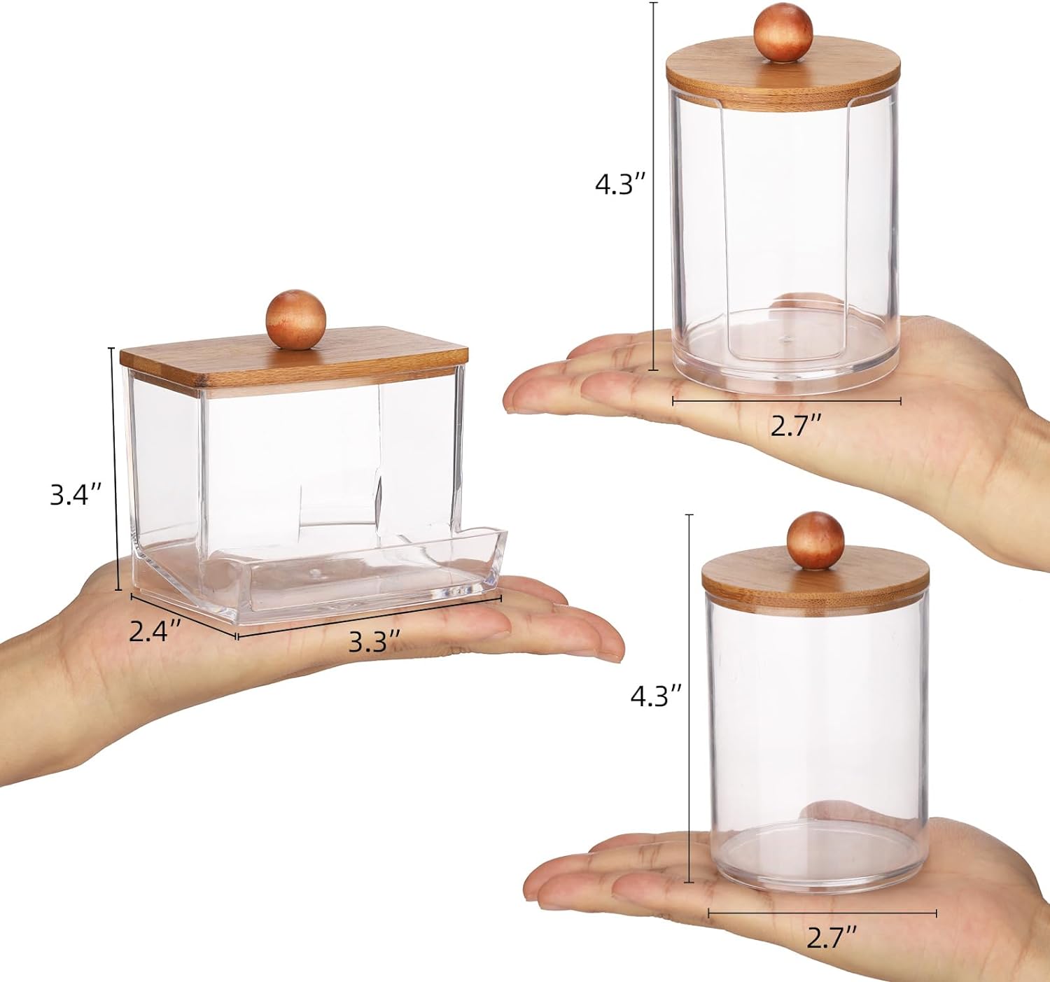 Tbestmax Bathroom Organizer Accessories Set-10 oz,7 oz Qtips Holder Storage with Bamboo Lids, Cotton Ball/Swabs Dispenser, Apothecary Jar 3 Pcs