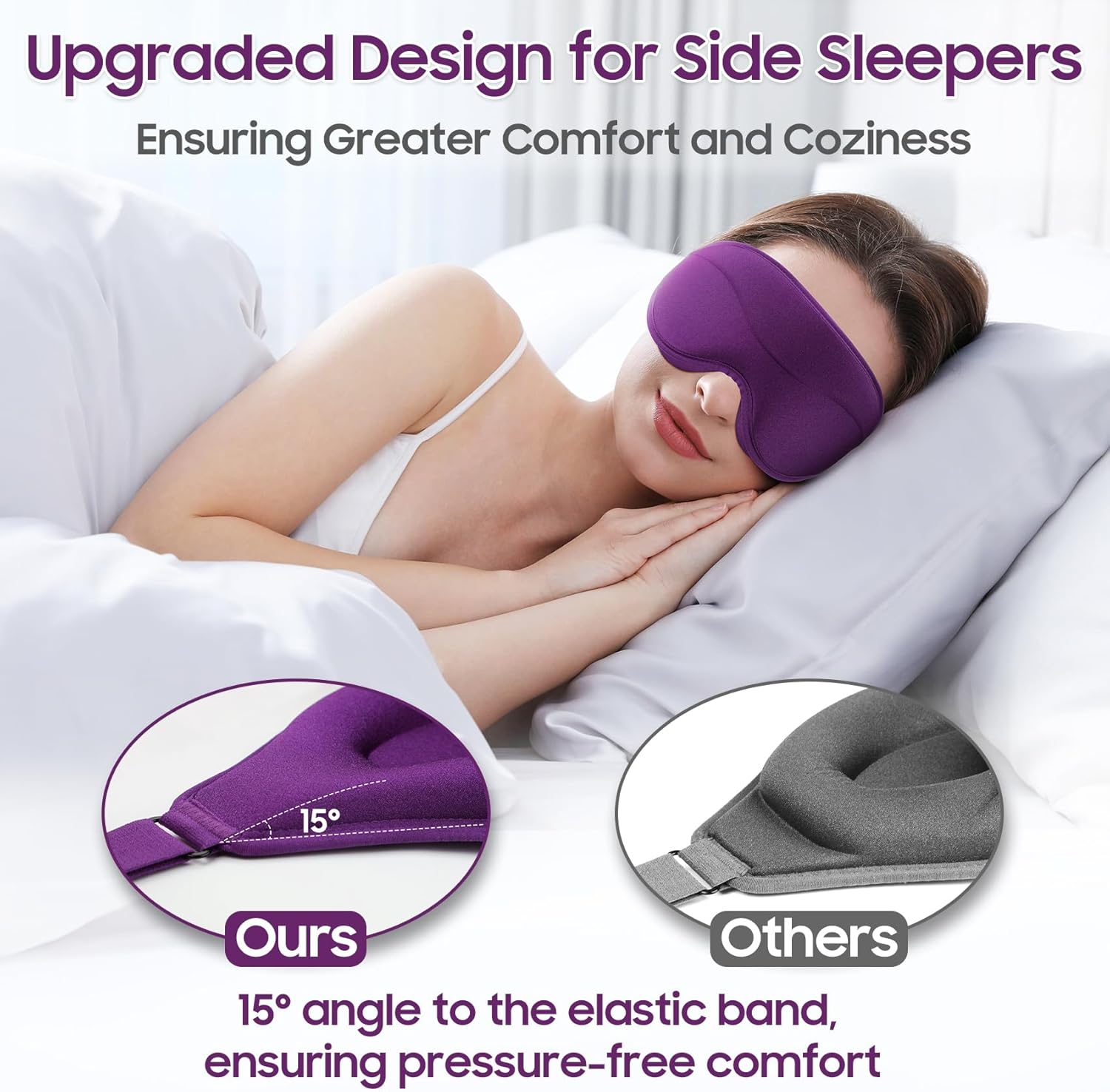 Sleep Mask - Total Blackout 3D Sleeping Mask, Super Lightweight & Silky Soft Eye Mask for Sleeping, Fully Adjustable Fit for Home, Office, Traveling, Meditation, Yoga, Purple