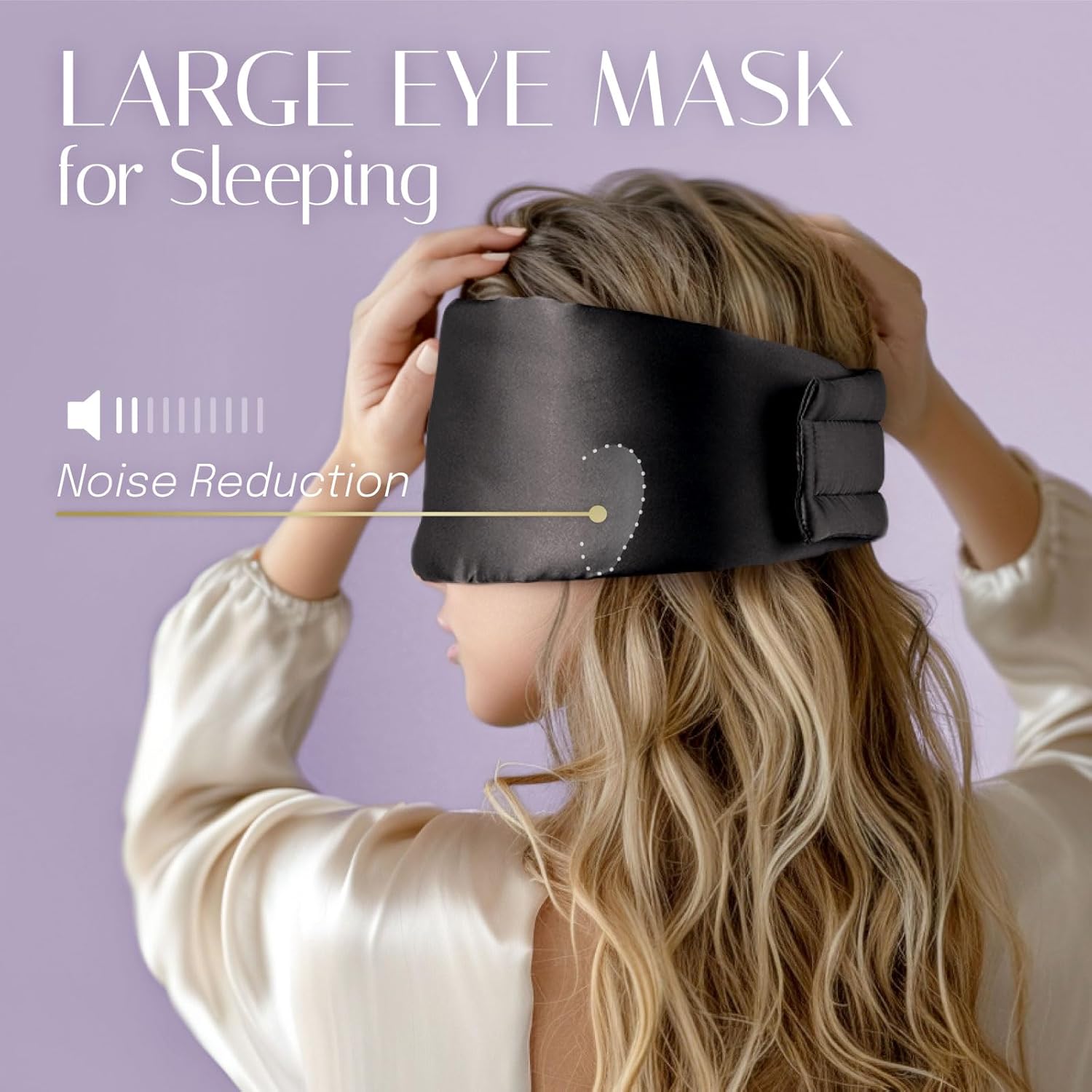 Silk Sleep Mask Soft Pressureless: 100% Mulberry Silk for Eye Skin Anti Wrinkles, Large Size for Total Blackout, Adjustable Wide Velcro Ear Cover
