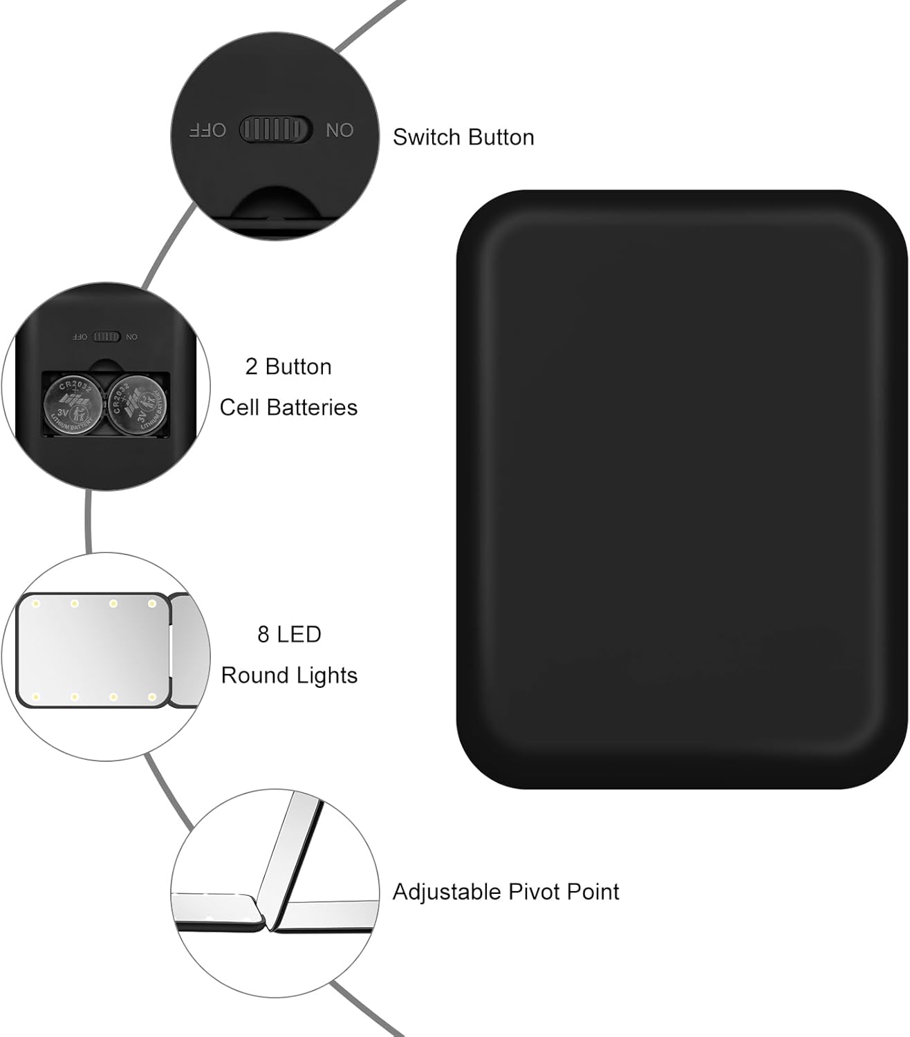 - [Illuminate Exclusive Your Beauty] - Our travel mirror is equipped with eight super bright LED fluorescent lights, which will reach maximum brightness when you turn on the button placed on the back, allowing you to better show the most realistic look in dimly lit scenarios, and even in such environments, it can perfectly complement your beauty.
