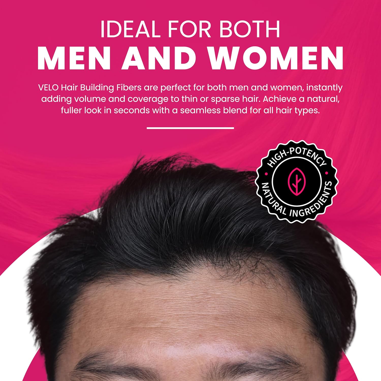 - INSTANTLY FULLER-LOOKING HAIR: VELO Hair Building Fibers help create the appearance of thicker, fuller hair by naturally blending with existing strands. Perfect for thinning areas and eanhancing overall hair volume.