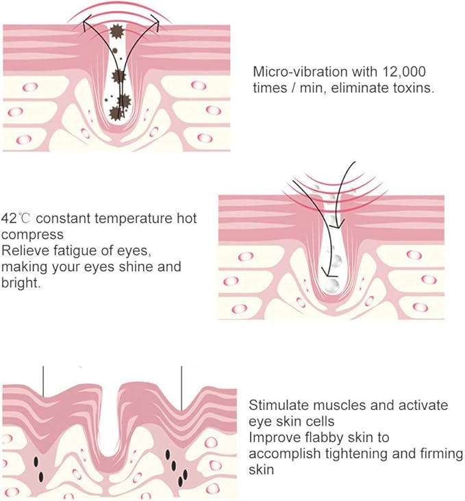 - NUTRIENT ABSORPTION: Our eye massager not only cleanses the skin, but also removes residue, dirt and excess oil, using this innovative feature to keep your skin clean and fresh, in addition, it also promotes the absorption of nutrients in skincare products to nourish and moisturize the skin, so that the skin is healthy and bright