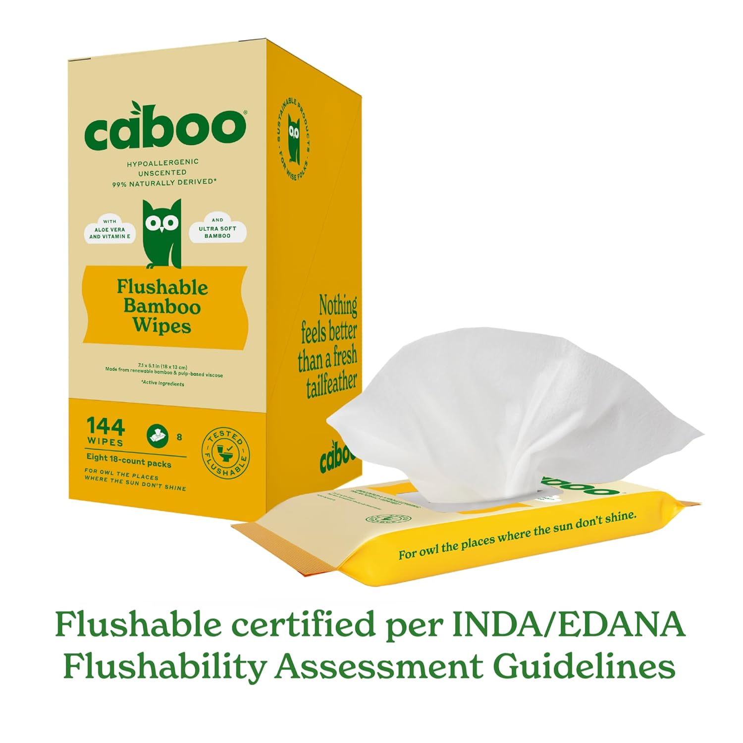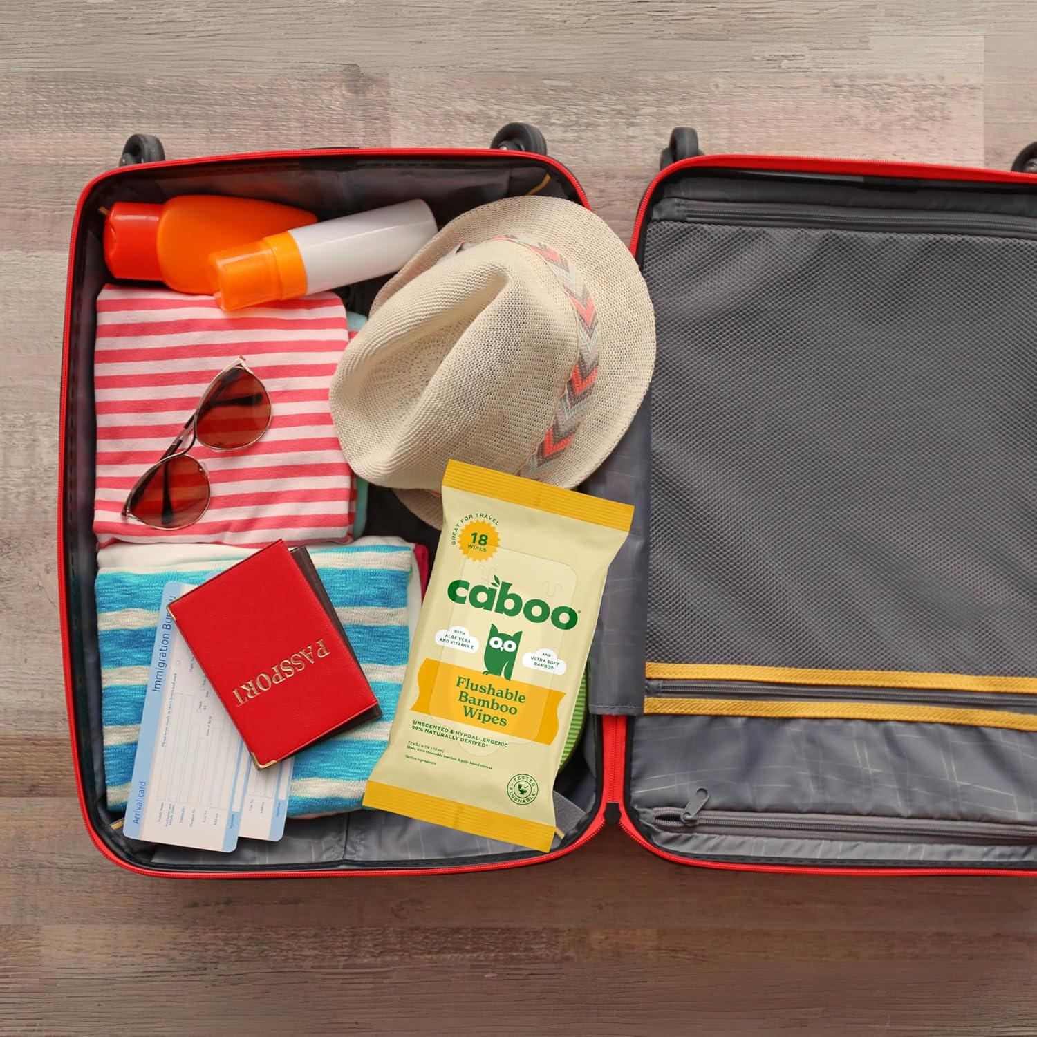 Caboo Tree Free Flushable Wipes, Travel Wipe, Certified Flushable, Septic Safe, Biodegradable Wipe for Adults, Pack of 8, Total of 144 Travel Toilet Wipes