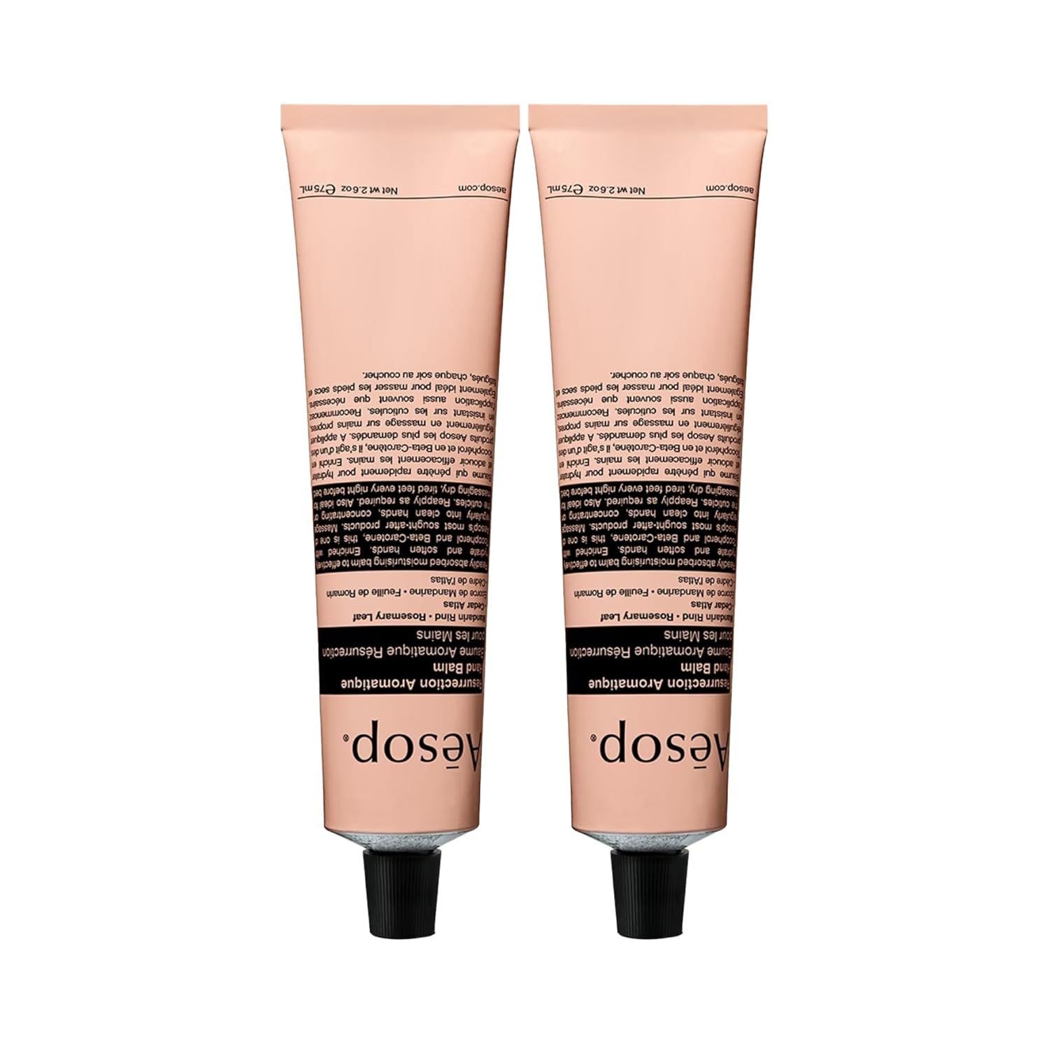 Aesop Resurrection Aromatique Travel Size Hand Balm | Lotion with Sweet Almond and Macadamia Nut to Nourish Dry Hands | 2.4 oz / 75mL (Pack of 2)
