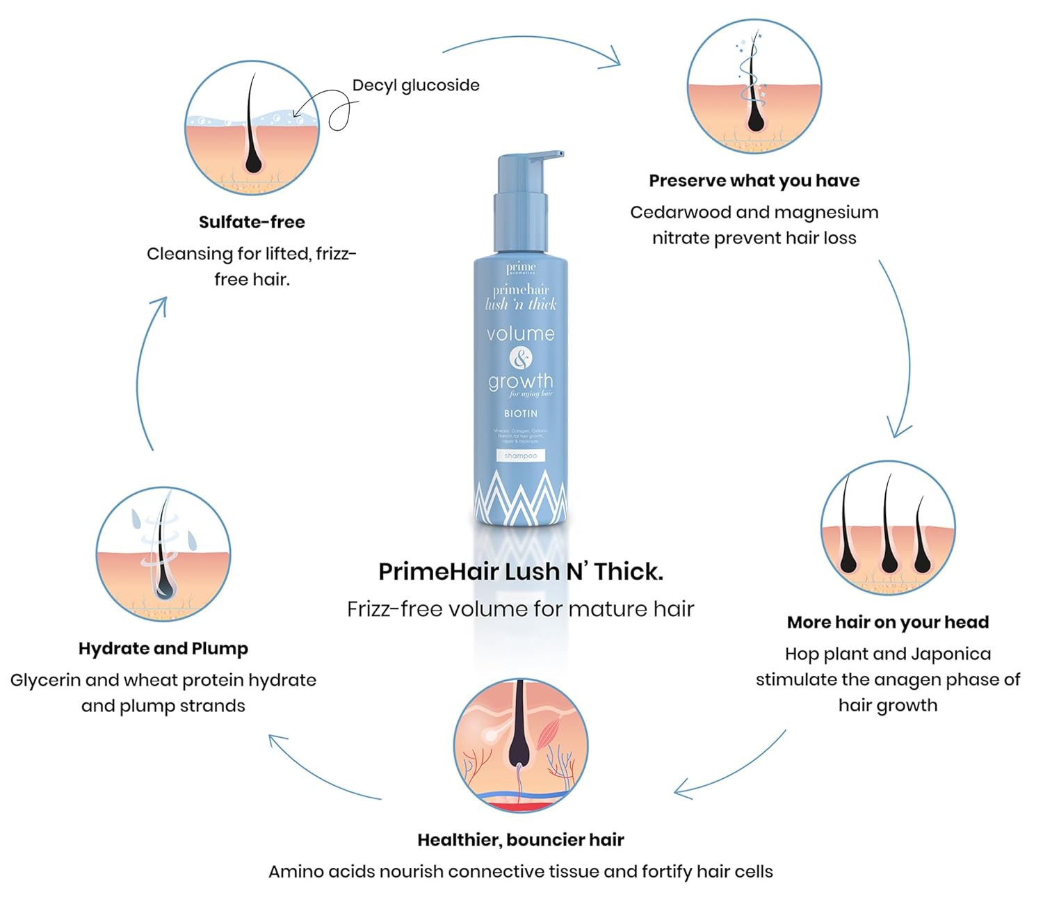 - YOUR BEST HAIR, EVERYDAY – Your hair deserves as much attention as your skin. Sulfate free and paraben free PrimeHair Lush N' Thick hypoallergenic shampoo keeps your hair frizz-free. Provides lasting volume, without "gimmicks".