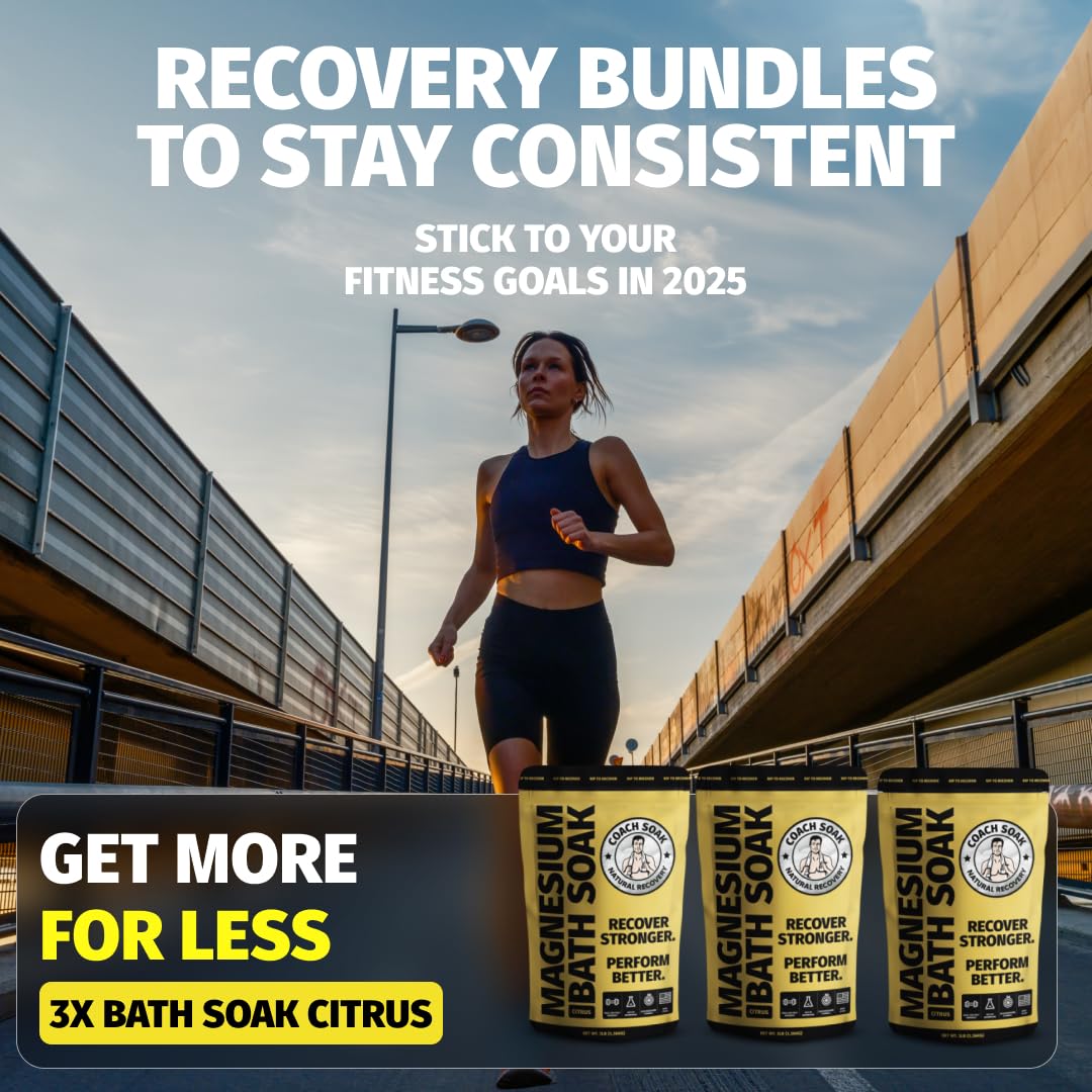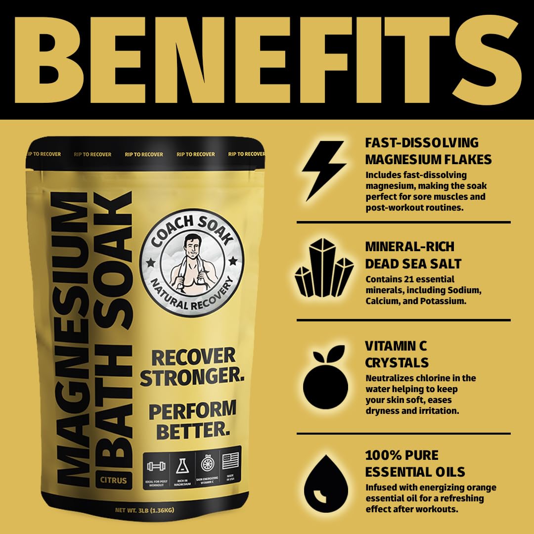 Coach Soak Recovery Bath Soak - Alternative to Epsom Salt Bath Soak - Fast-Absorbing Pure Magnesium Flakes with 21 Minerals, Bath Salts & Essential Oils - 9 lb (Pack of 3)