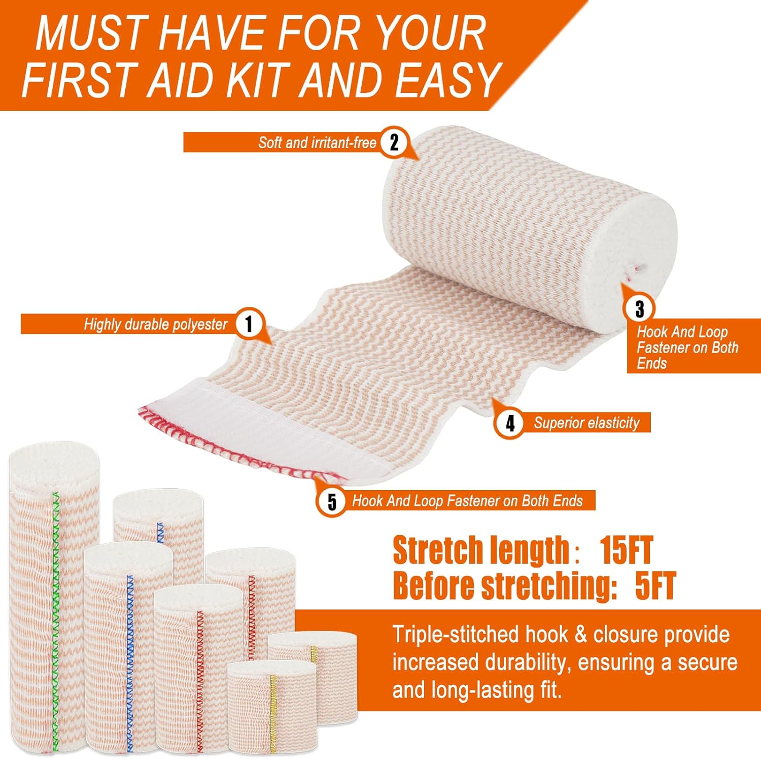 - Easy to Use and Remove: Designed for your convenience, our elastic bandage wrap is straightforward to apply and remove. It saves time and effort, making it a handy addition to your first aid kit.Reliable hook and loop closure for easier fixation compared to other bandages. They can be wrapped quickly with adjustable pressure and keep the bandage tight for hours.