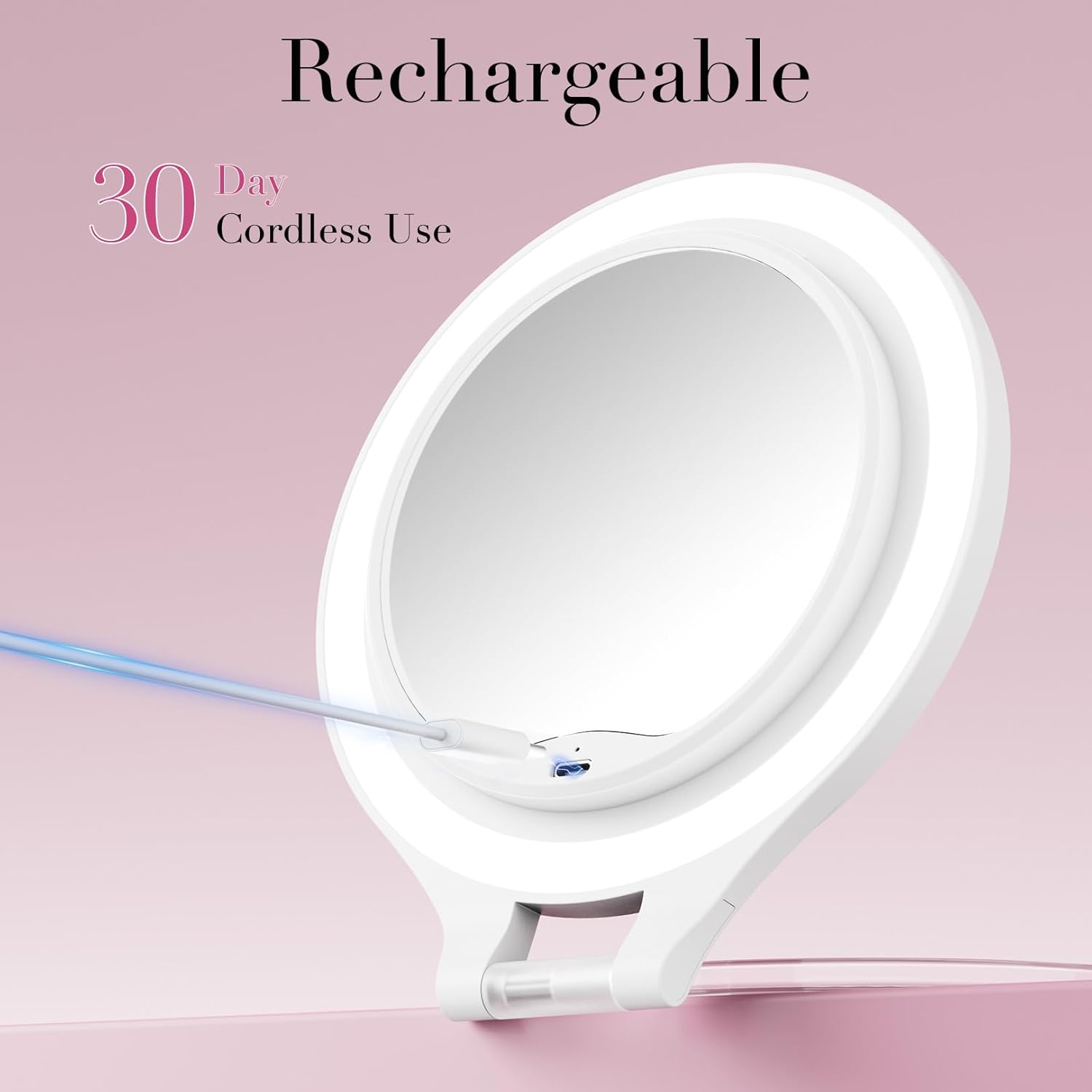 - 【Rechargeable Travel Magnifying Mirror】Our travel mirrorboasts a built-in 1500 mAh battery and Type-C port for rapid recharging, you can use it cordless after fully charged and no need to replace battery any more. The makeup mirror connect a laptop, charger or mobile power supply, powerbank, PC via included Type C cable.Conquer makeup challenges on the move with our makeup mirror. It empowers you to effortlessly create stunning looks wherever you go.