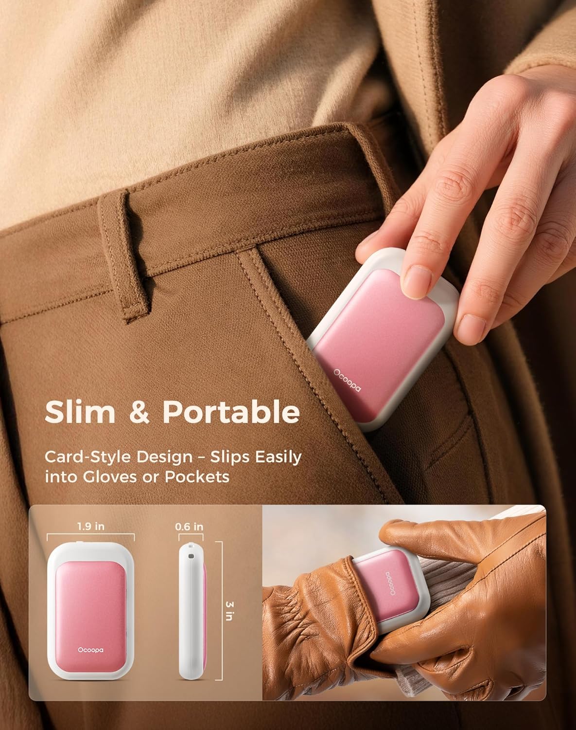 - Ultra-Thin and Portable: The Ocoopa UT4 Young hand warmer is your perfect on-the-go companion, measuring just 0.6 inches thick and 30% lighter than similar models; It easily fits into gloves, pockets, and wallets, allowing you to enjoy warmth anytime, anywhere; Just snap it on and experience the convenience of the magnetic 2-in-1 design
